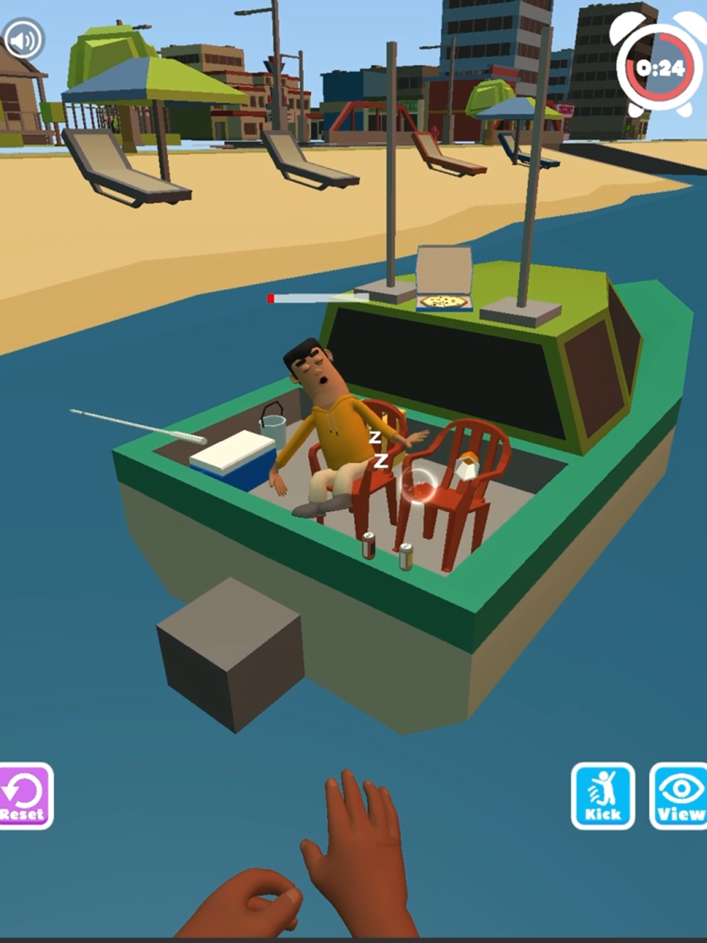 Grab any object within reach and throw it at the boy to rouse him from his slumber. With endless possibilities, you can wake him up in countless ways.
