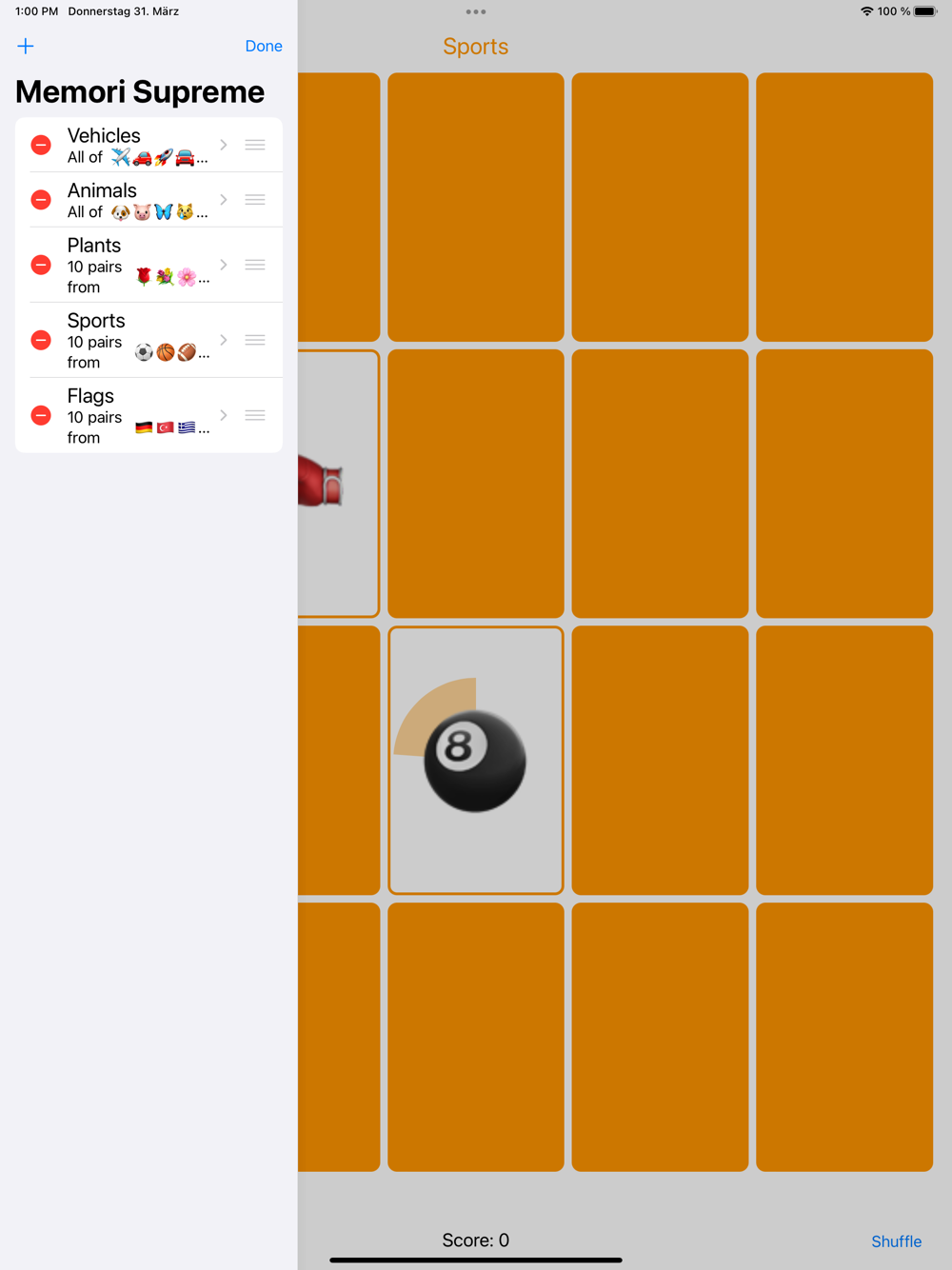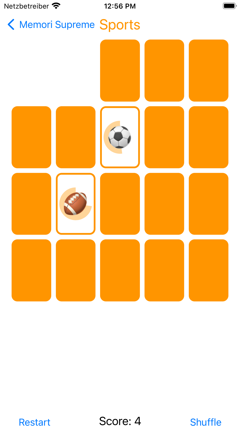 This supreme version of the app has some default themes, but you are free to add new themes and edit existing ones. Also, you can add or remove emojis, change the color of the themes/cards or the number of cards to be matched.