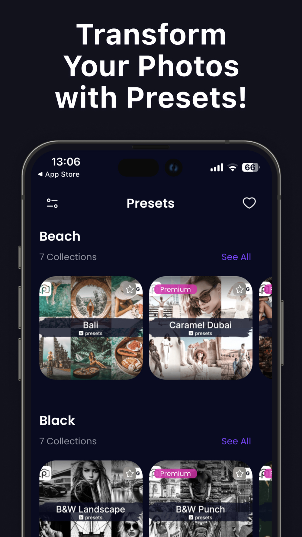 All of us want to have original, high-quality photos on our social feeds and other resources. Our app will help you to give your photos a second life and make you feel like a professional photographer. Our app is a database of ready-made professional presets for Lightroom that you can use to get the results you want. You can prepare professional social posts right from your phone and make your page even more attractive. All presets are categorized for ease of navigation through the app. You'll be able to save the presets you like to "Favorites" so you can use them in the future. We've created detailed instructions on using presets specifically for inexperienced users. Make your feed unique and enjoy awesome photos to share with the world!
