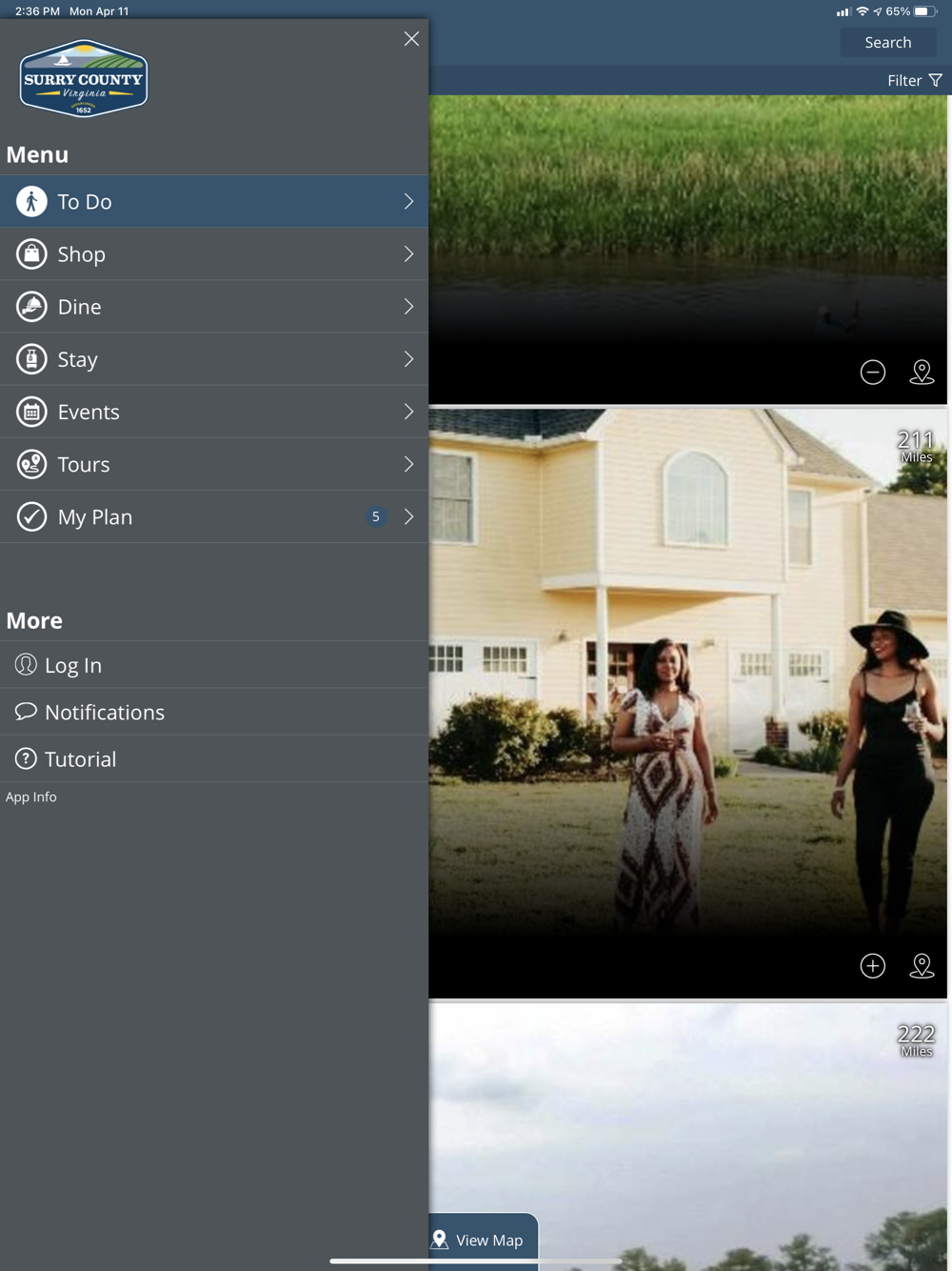The Surry County Tourism app is designed to help you plan the perfect trip to Surry County, VA!
