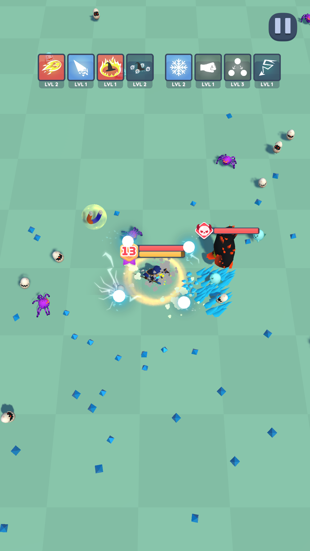 Survive as long as you can against the magic creatures along your way and eliminate them all. Raise your power and unlock the spells that you have never seen before and which you couldn't even imagine!