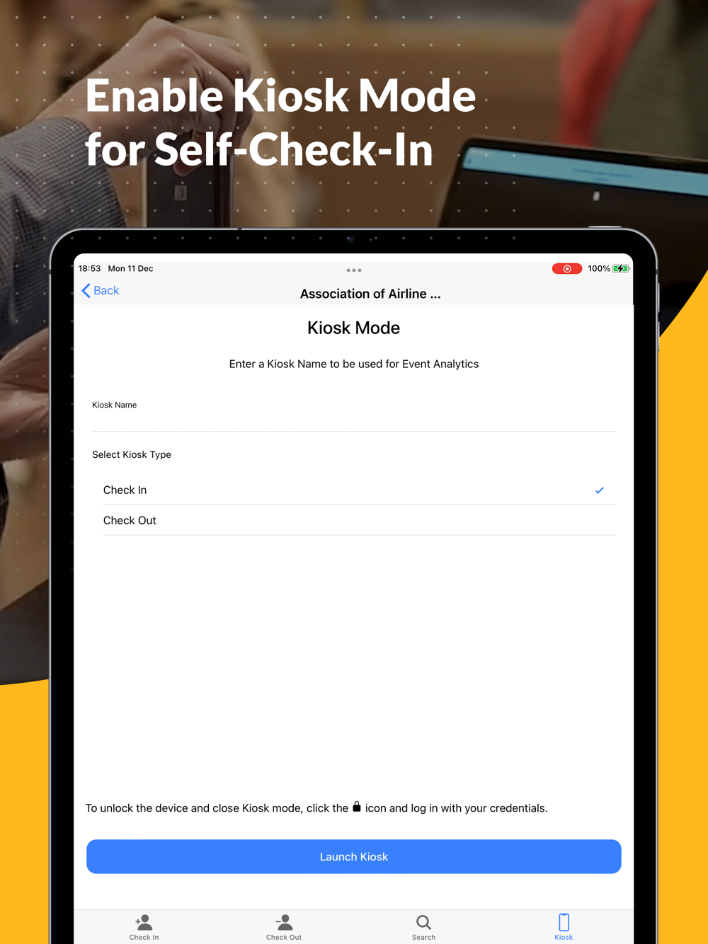 "Eventmobi onsite app allows event organizers to check-in attendees during an event by simply scanning a QR code. All check-in related data can be viewed in and exported from Experience Manager.