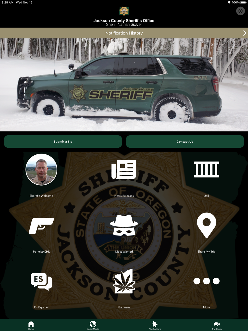 The Jackson County Sheriff’s Office mobile application is an interactive app developed to help improve communication with area residents. The Jackson County Sheriff App allows residents to connect with the Jackson County Sheriff’s Office by reporting crimes, submitting tips, and other interactive features, as well as providing the community the latest public safety news and information. The app is another public outreach effort developed by the Jackson County Sheriff’s Office to improve communication with county residents and visitors. This app is not intended to be used to report emergency situations. Please call 911 in an emergency.