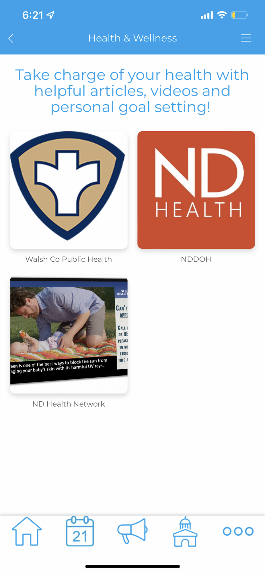 The Walsh County app is an app designed for residents or visitors of Walsh County North Dakota. The app is a community-reflective app that connects and empowers Walsh County residents and visitors with critical, timely and relevant content they want to see. Content includes but not limited to articles, videos, events, and resources