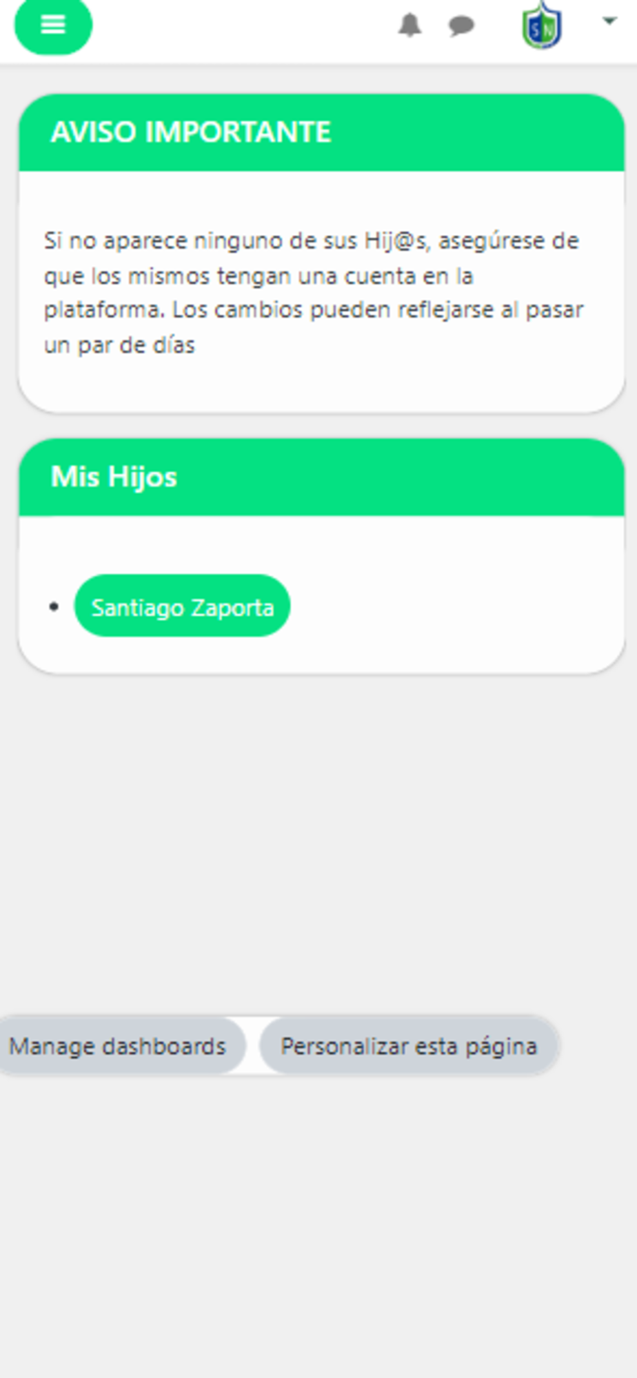 -Ingreso al control parental (permite ver las calificaciones, progreso del estudiante, etc.)