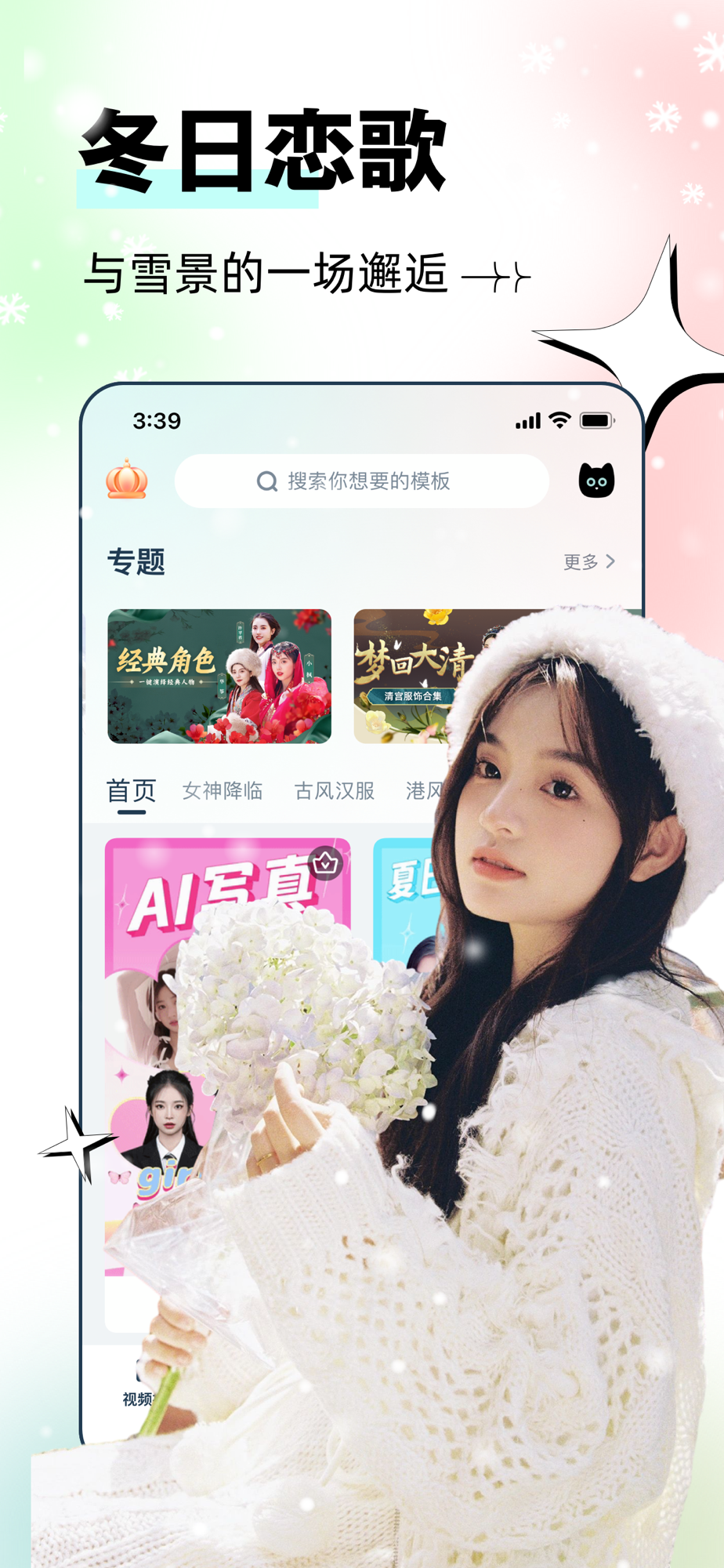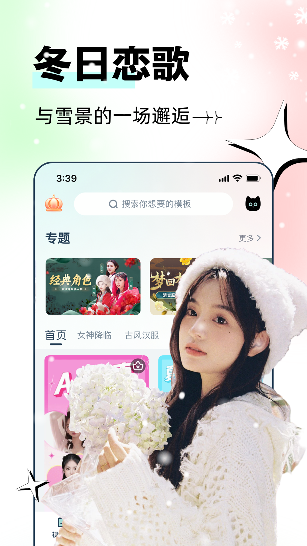 海量换装视频模版,众多风格可供选择,让你演绎不一样的自己。高冷的女神合集,经典的港风变装,纯正的民族服饰,旗袍美人,金童玉女,魅力男神,时尚街拍,根据你的喜好,一键制作换装视频。赶快玩儿起来啊!