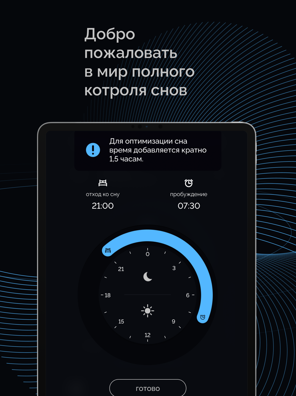 Это приложение является умным пультом управления для Кубика Сна. Оно позволяет как настраивать параметры программы (например, время), так и параметры самого устройства - индикацию, обратную связь и т.п.