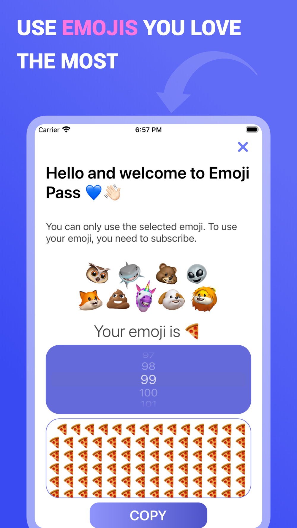 Emoji Passer is an application for creating creative, fun, bright and colourful posts, messages, stories and publications in various social networks. Just choose one of the offered emoji and multiply it by the required number of times, then copy the result and send it to any social network!