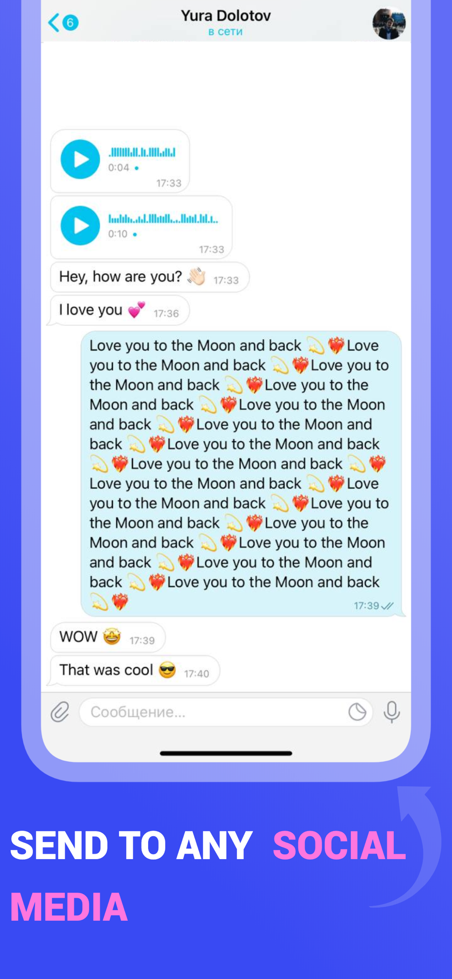 The application allows you to enter any combination and multiply them up to 500 times. Send your friends special messages, make creative posts and just have fun!