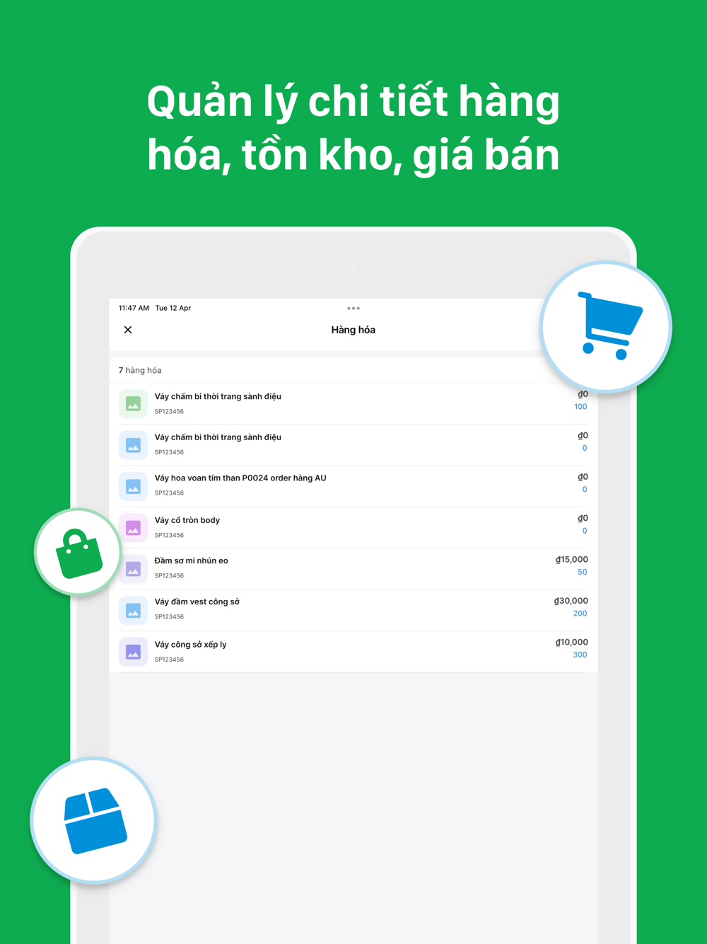 Quản lý thông tin hàng nghìn mặt hàng chính xác: tên sản phẩm, mẫu mã, size số, giá bán, số lượng xuất nhập tồn kho…