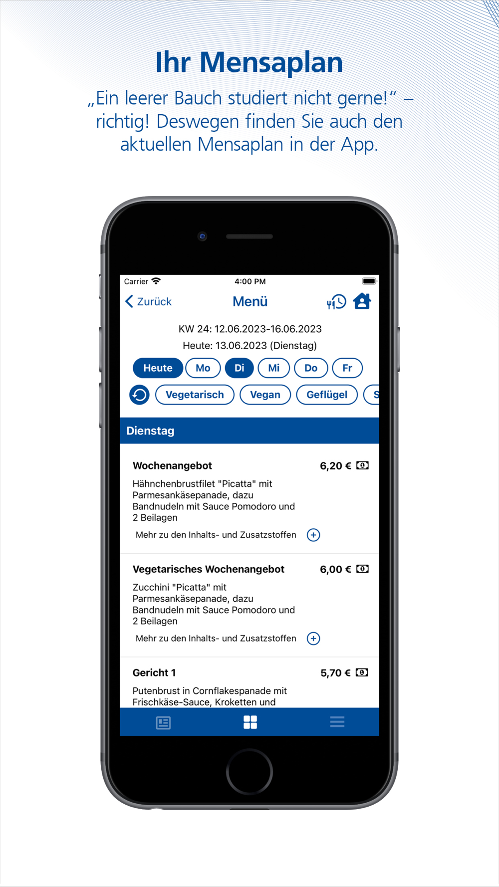 - Zufällig in der Nähe vom Campus Hagen? Der aktuelle Mensaplan ist jetzt auch in der App.