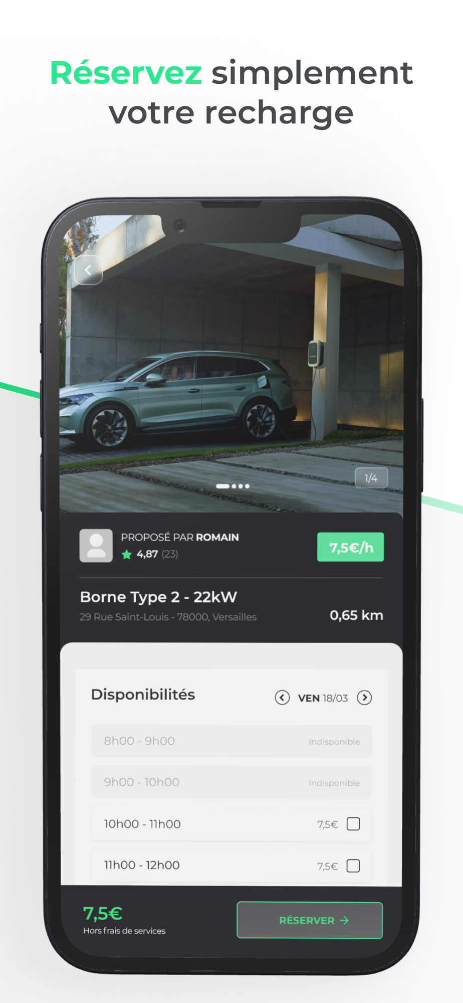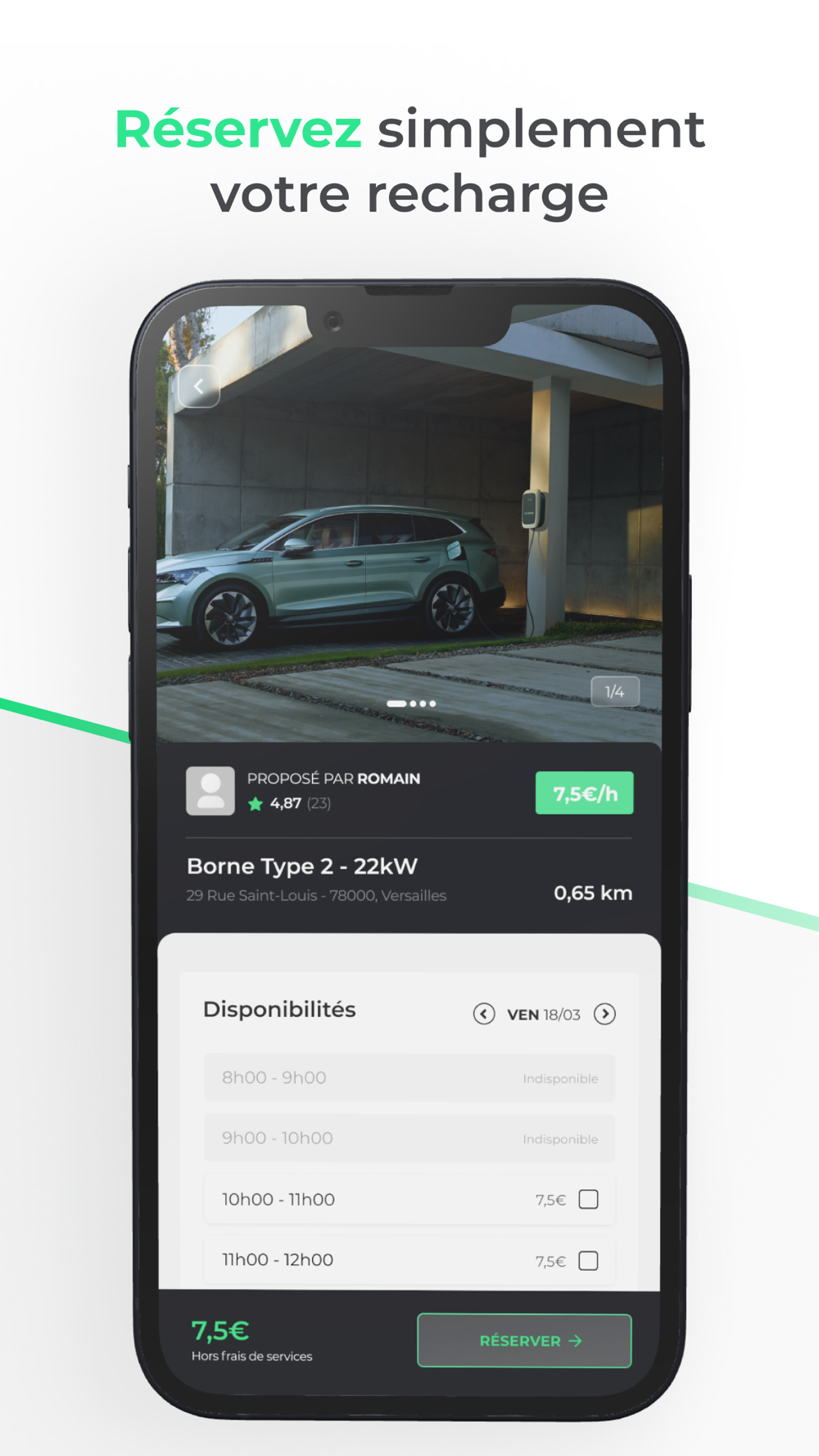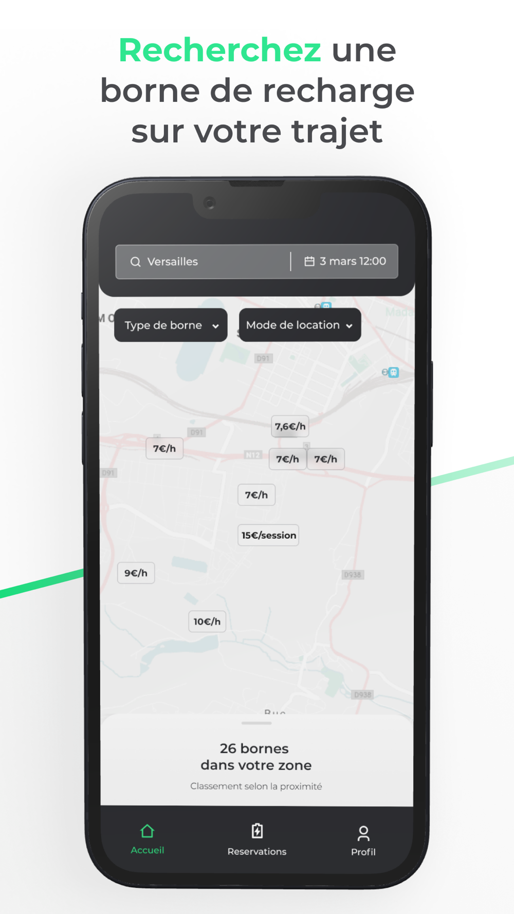 Trouvez rapidement la borne de recharge compatible avec votre véhicule et disponible quand vous l’êtes.