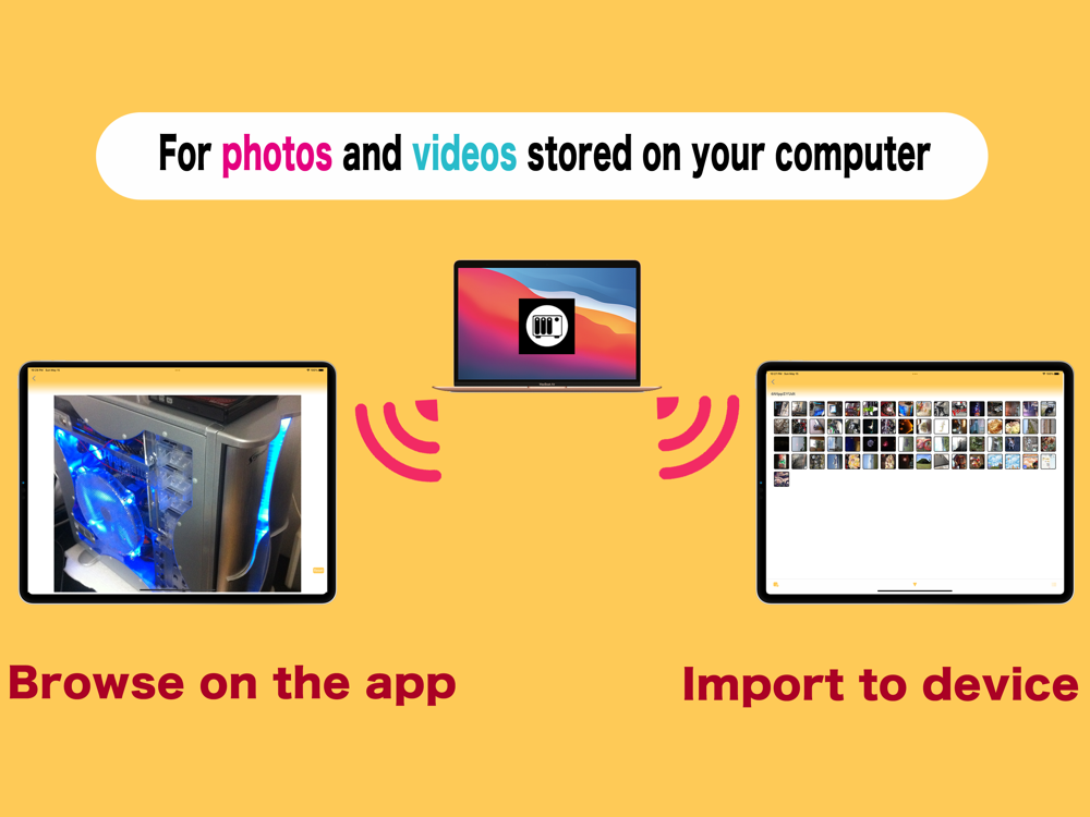 You can view and play your favorite photos and videos transferred to your computer on the app without having to download them and save them on your device.