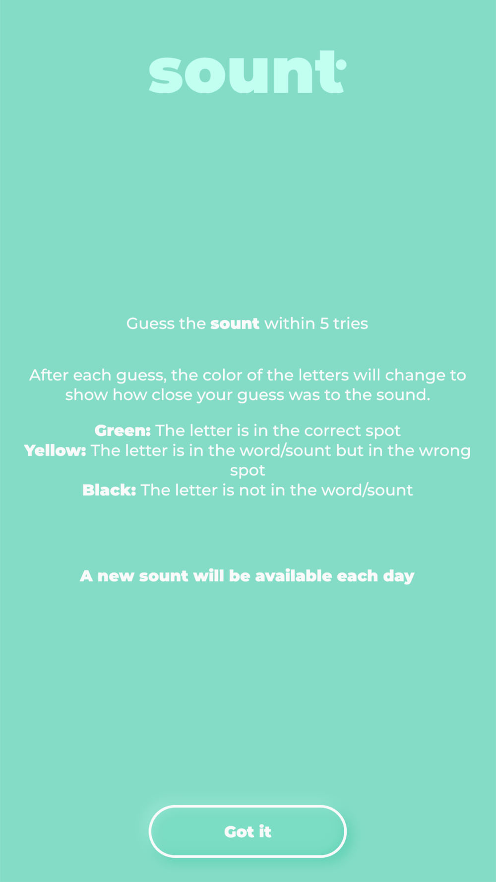 Every day, you have a new chance to guess today's sount. You have 5 tries to get it right. But don't worry, the app's gonna tell if you are close.