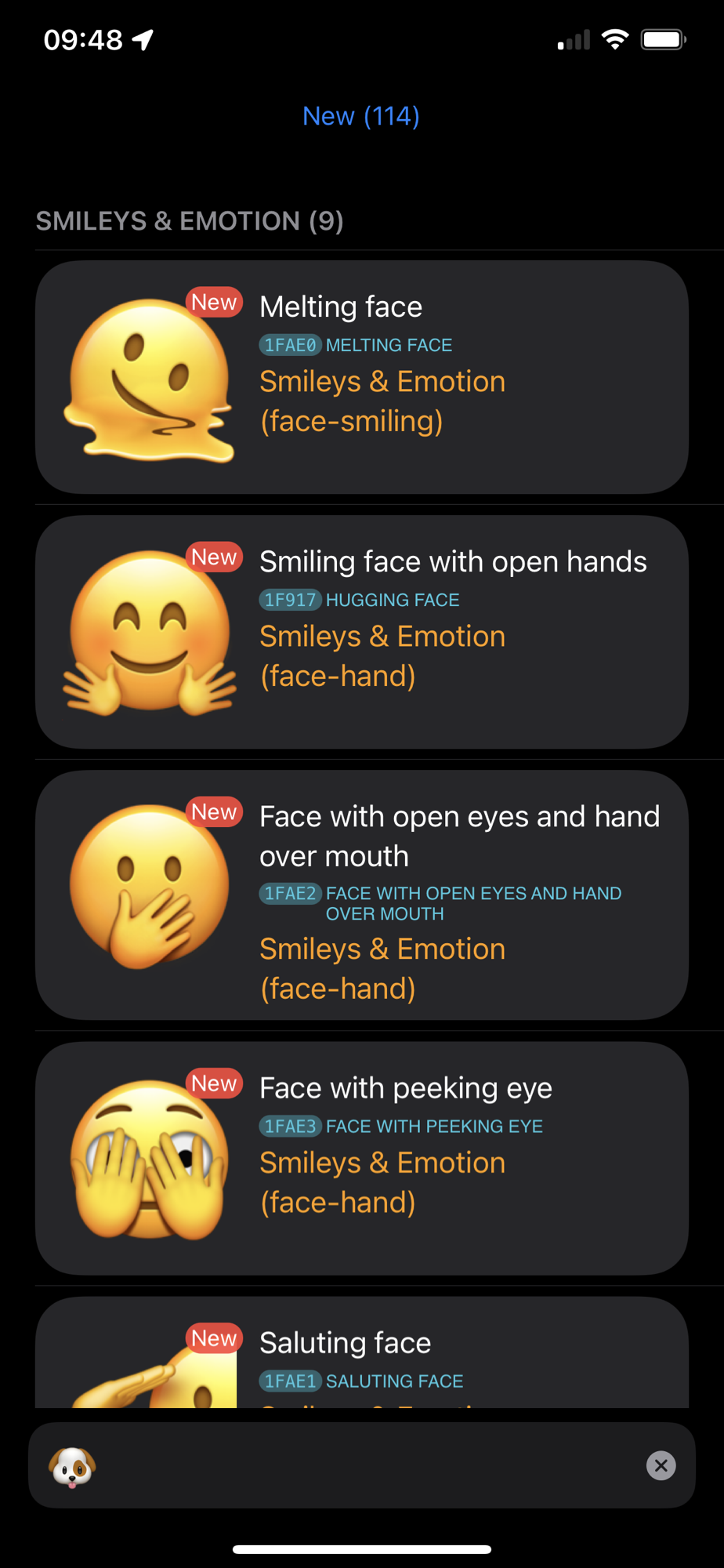 The built-in emoji keyboard only show emojis in small size, you cannot easily see all the artistic flair in the design. Also you cannot see the exact meaning and if you are a developers, you might want to know the Unicode scalars of the emoji characters. Emoji Browser OG is the solution for this.