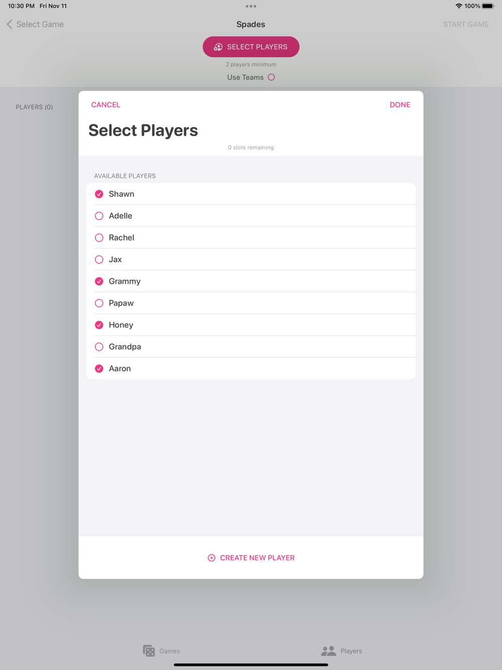 Currently supports Spades & Wizard card games.