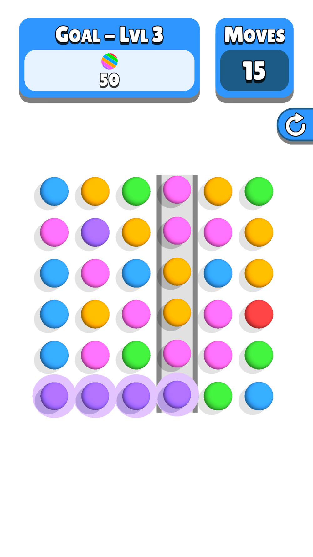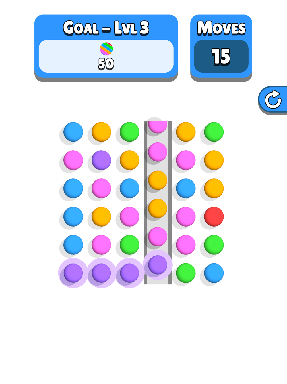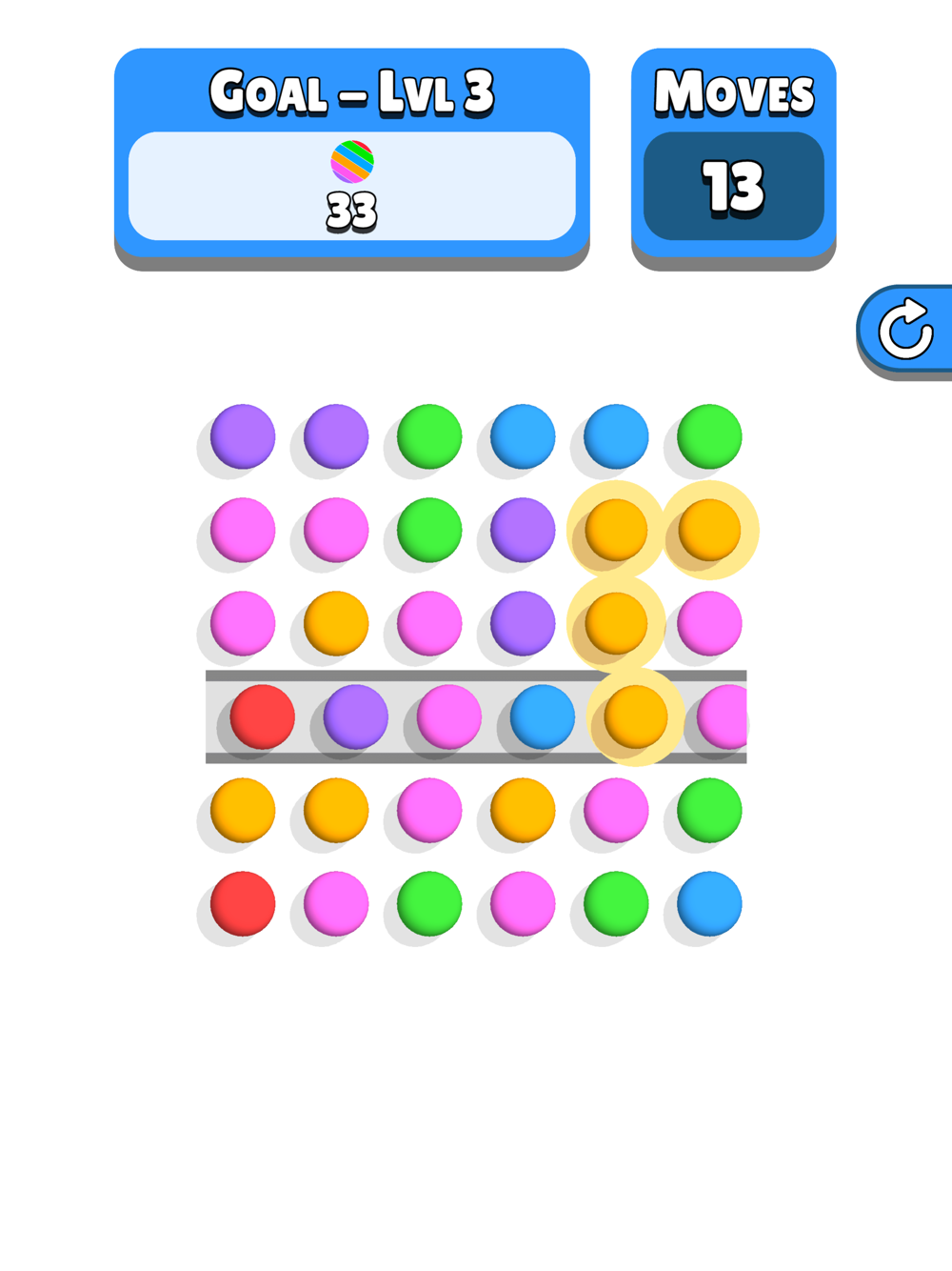 Slide entire rows and columns to connect 4 or more of the same colored balls and clear all the goals!