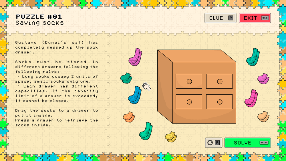 With a unique and original artistic style you'll fall in love with the scenaries and characters of the game. The game counts with two cases to solve and more than 20 different puzzles on the way that will make you rack your brains and are distributed all over Gaab.
