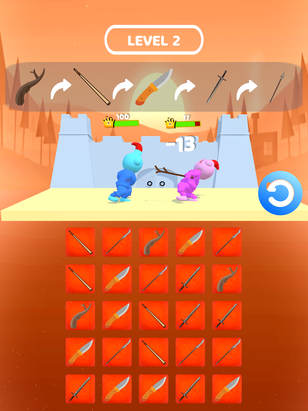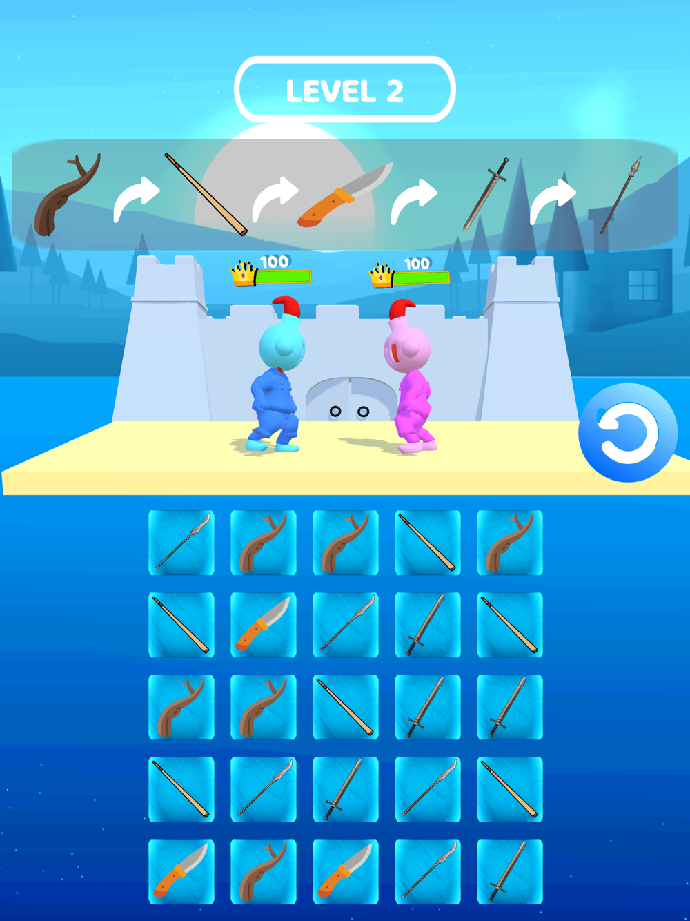 But be careful, don't let your opponent get better weapons than you, or he may beat you.