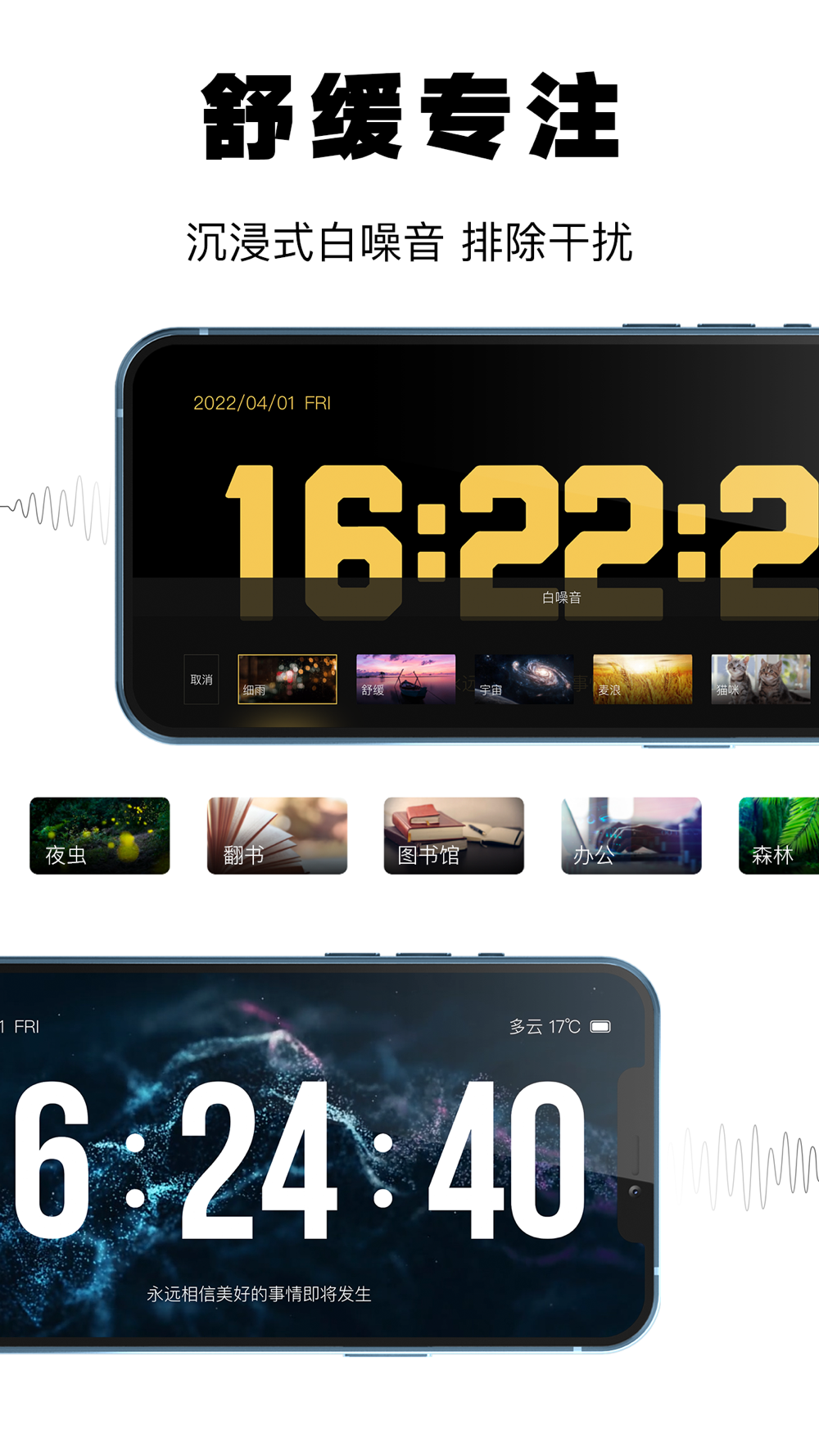 全屏时钟:有效减少手机上无关的信息干扰,静心学习工作,享受高效产出的时光。