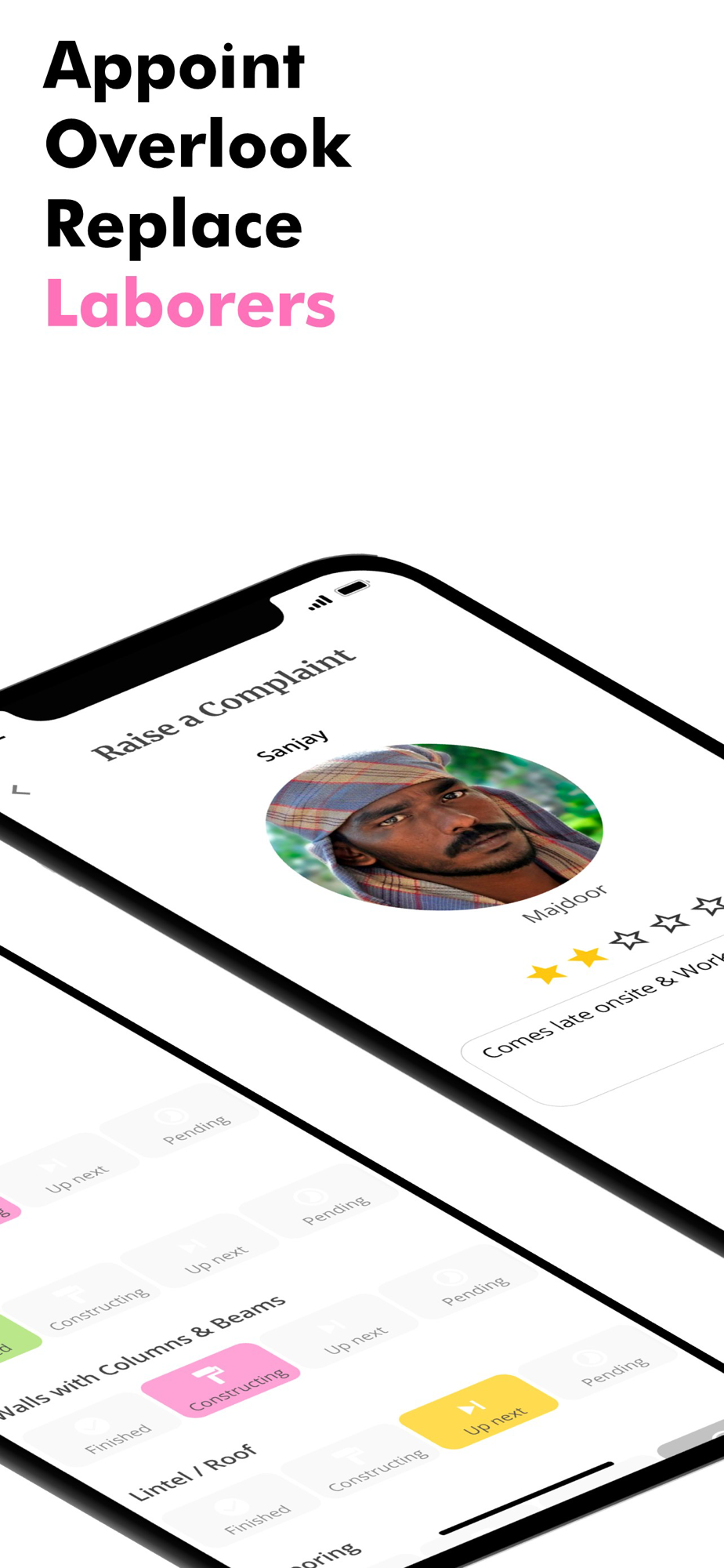Manage On-Site Laborers/Workers – From appointing any worker (mistri, mazdoor, carpenter, welder, tile/marble thekedaar, etc.) to overlook how they are doing in your site, you can even raise a complaint from the app if you feel the service provided by the workers is not satisfying.