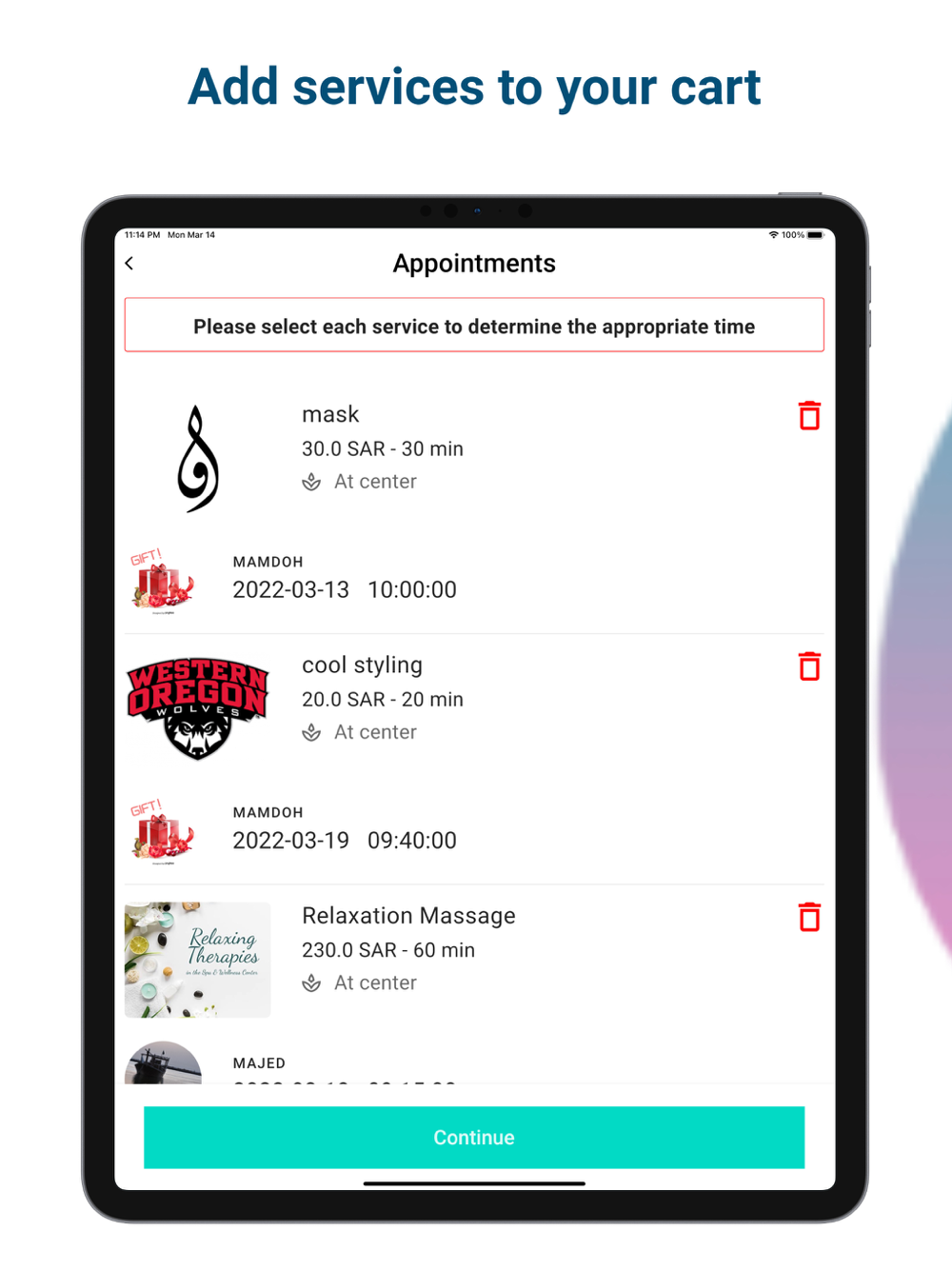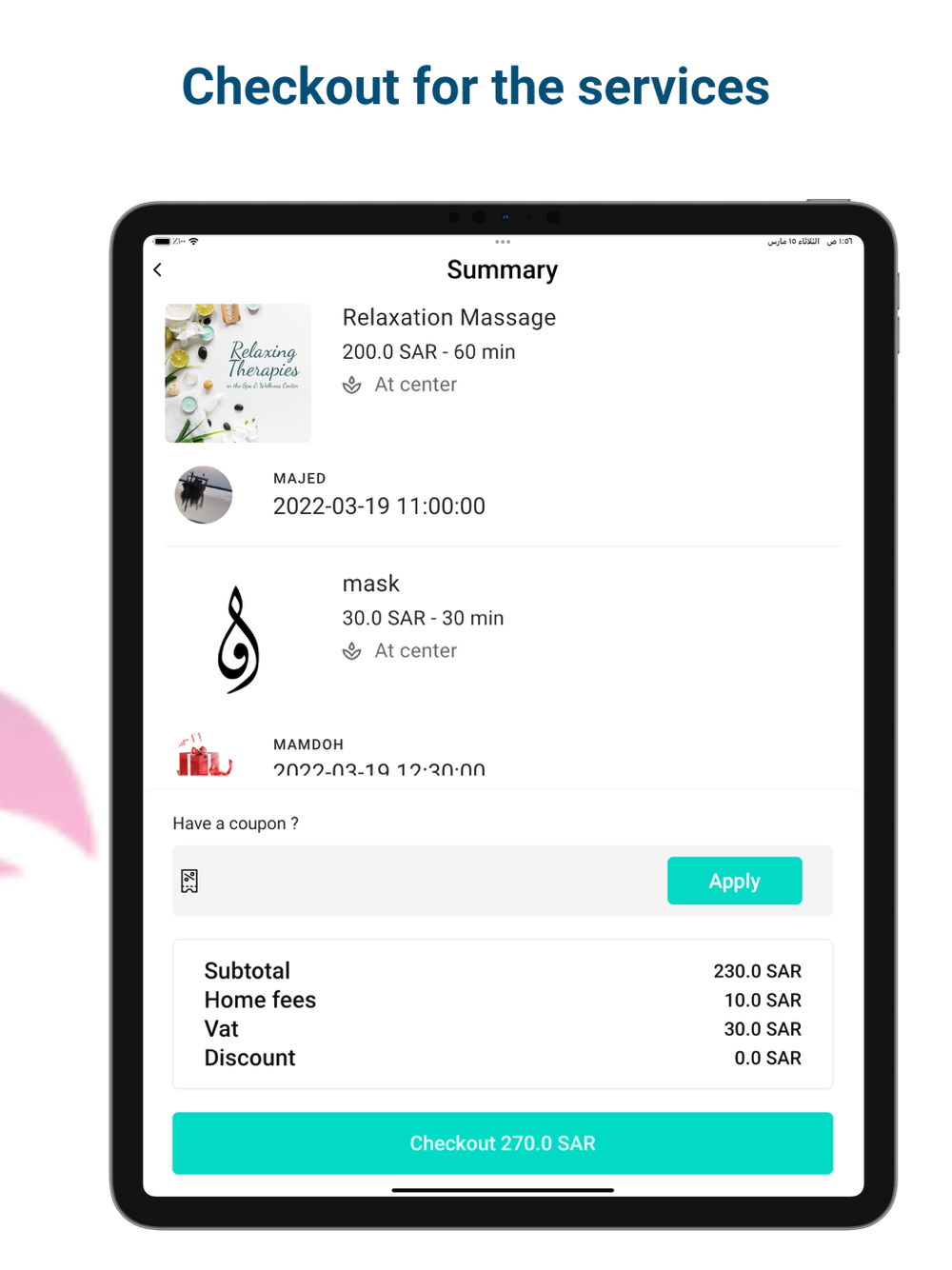 قم بالاختيار بين العديد من الخدمات وحدد الموعد الملائم واحجز لدينا وسنوفر لك الخدمة لدى مركز التجميل أو نقدم لك الخدمة أينما كنت.