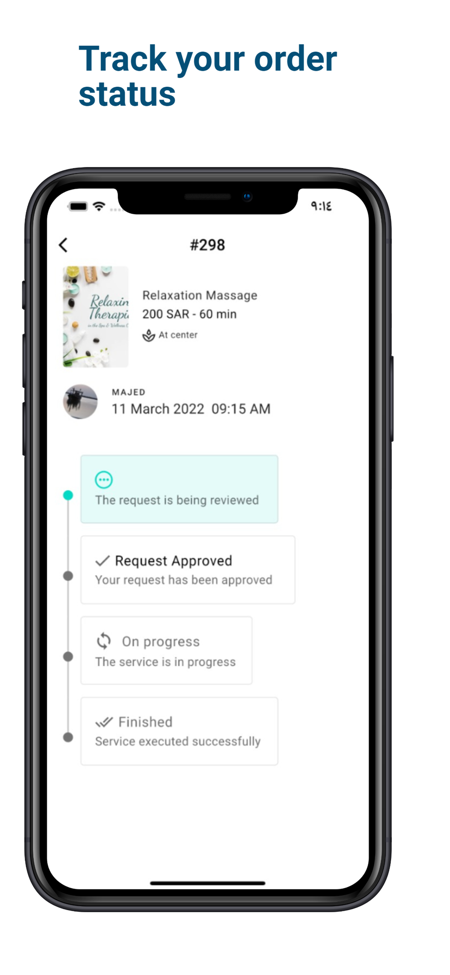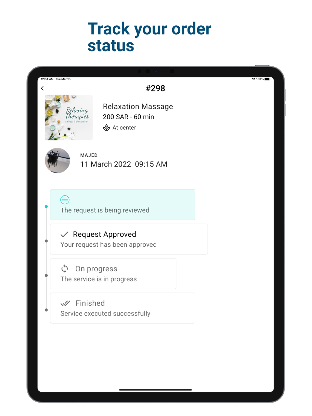 يعرض التطبيق تقييمات الموظفين والمراكز مع وجود تنبيهات بتغير حالة الحجز لدى مركز التجميل