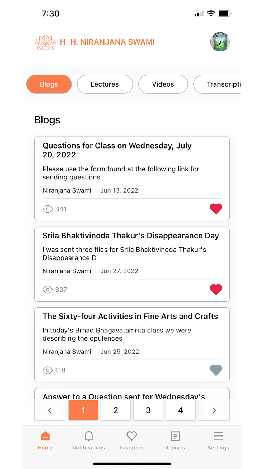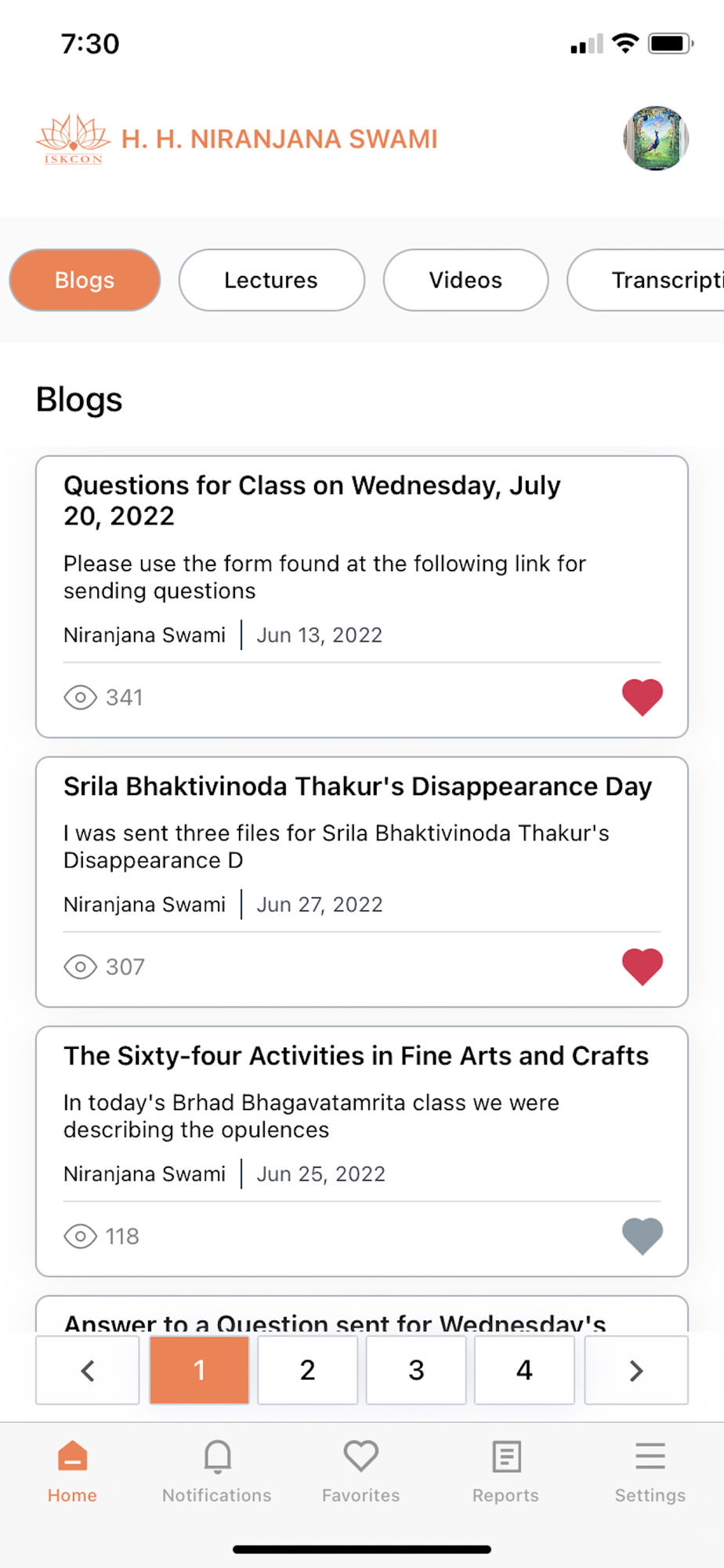 In this app you can read the latest blogs from Niranjana Swami. You can also access the entire collection of lectures, kirtans and various other talks given by His Holiness Niranjana Swami.