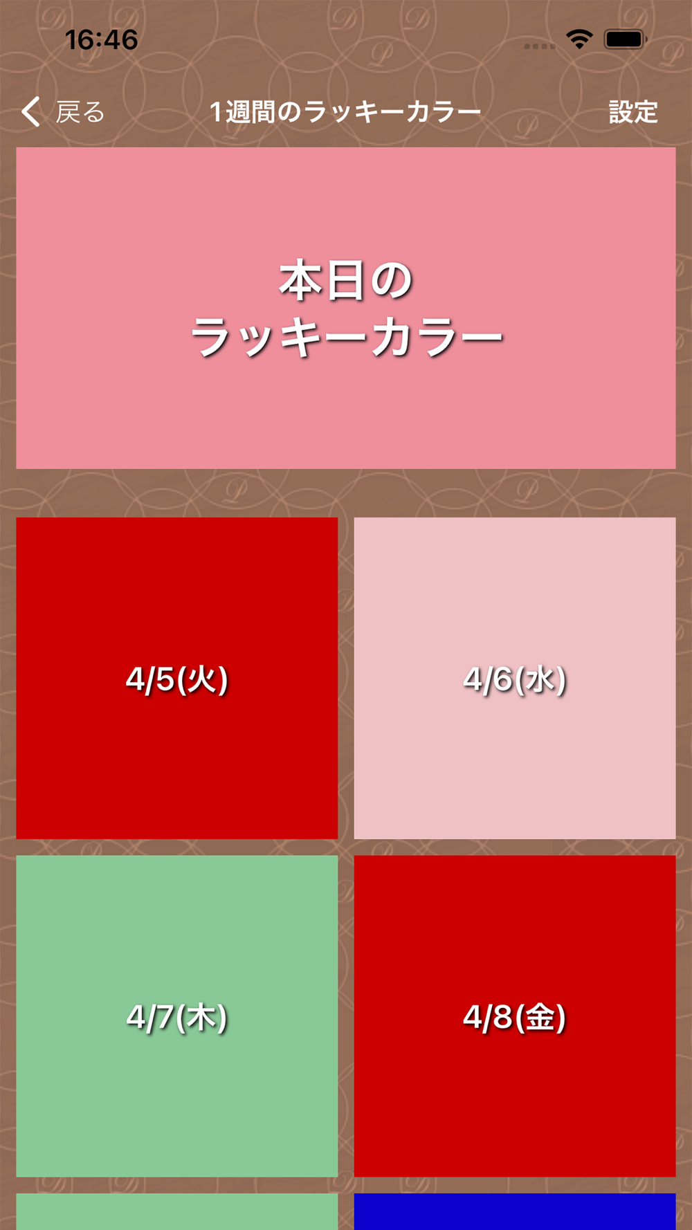 詳細画面には7日分のラッキーカラーを表示致しますので、前もってラッキーカラーを知ることができます。