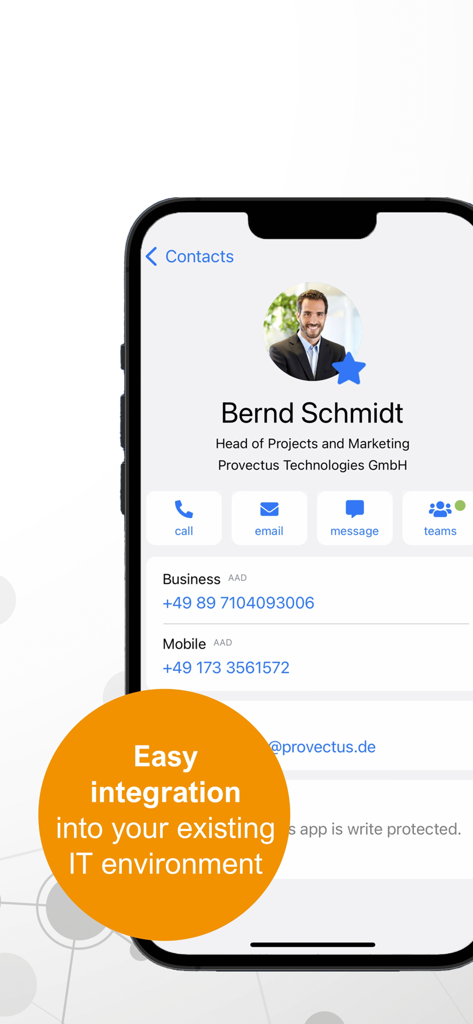 • Microsoft TEAMS integration lets you start Teams (video) calls and chats directly from the app, incl. display of Teams status