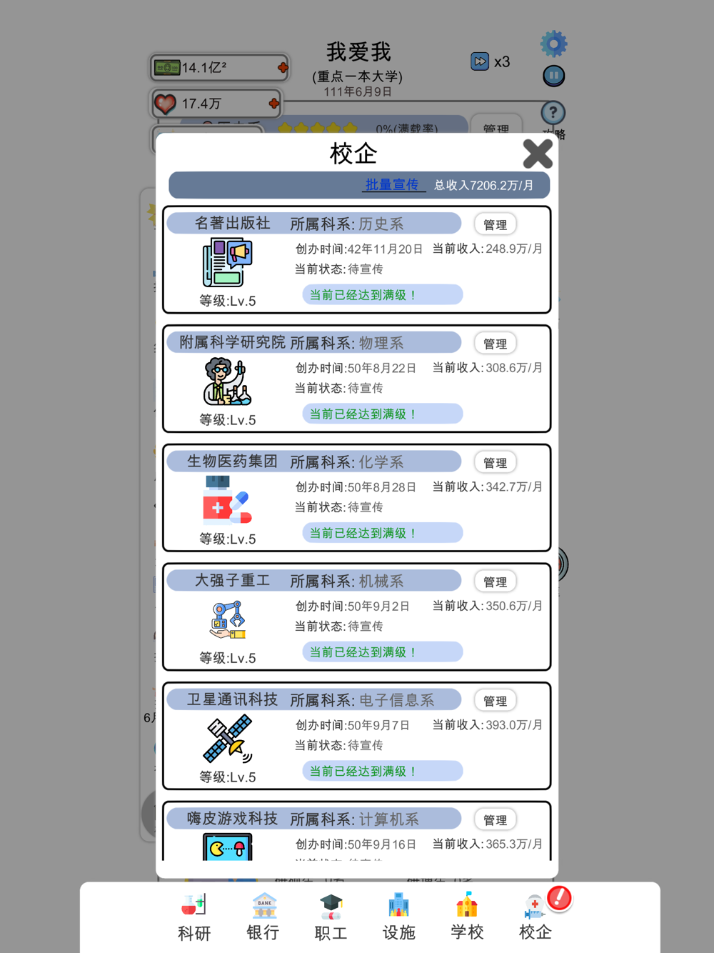 (2)开办自己的多种学科学系,你可以让自己的学校全方位发展,百花齐放。