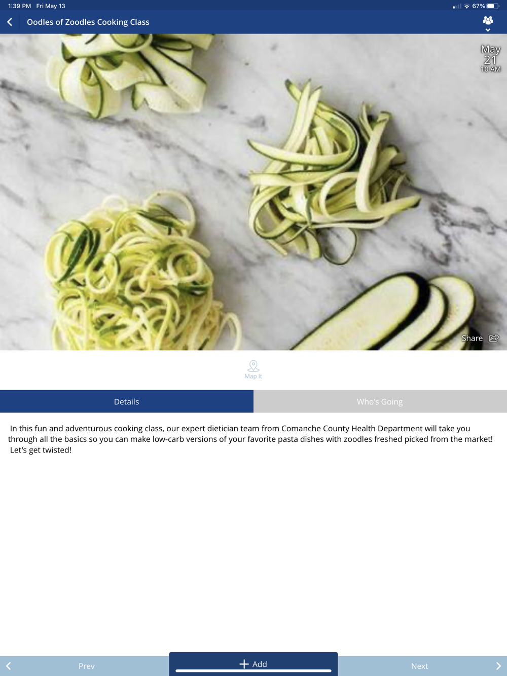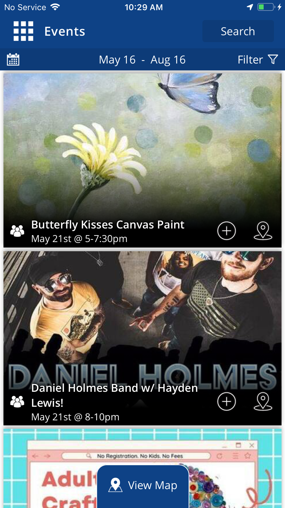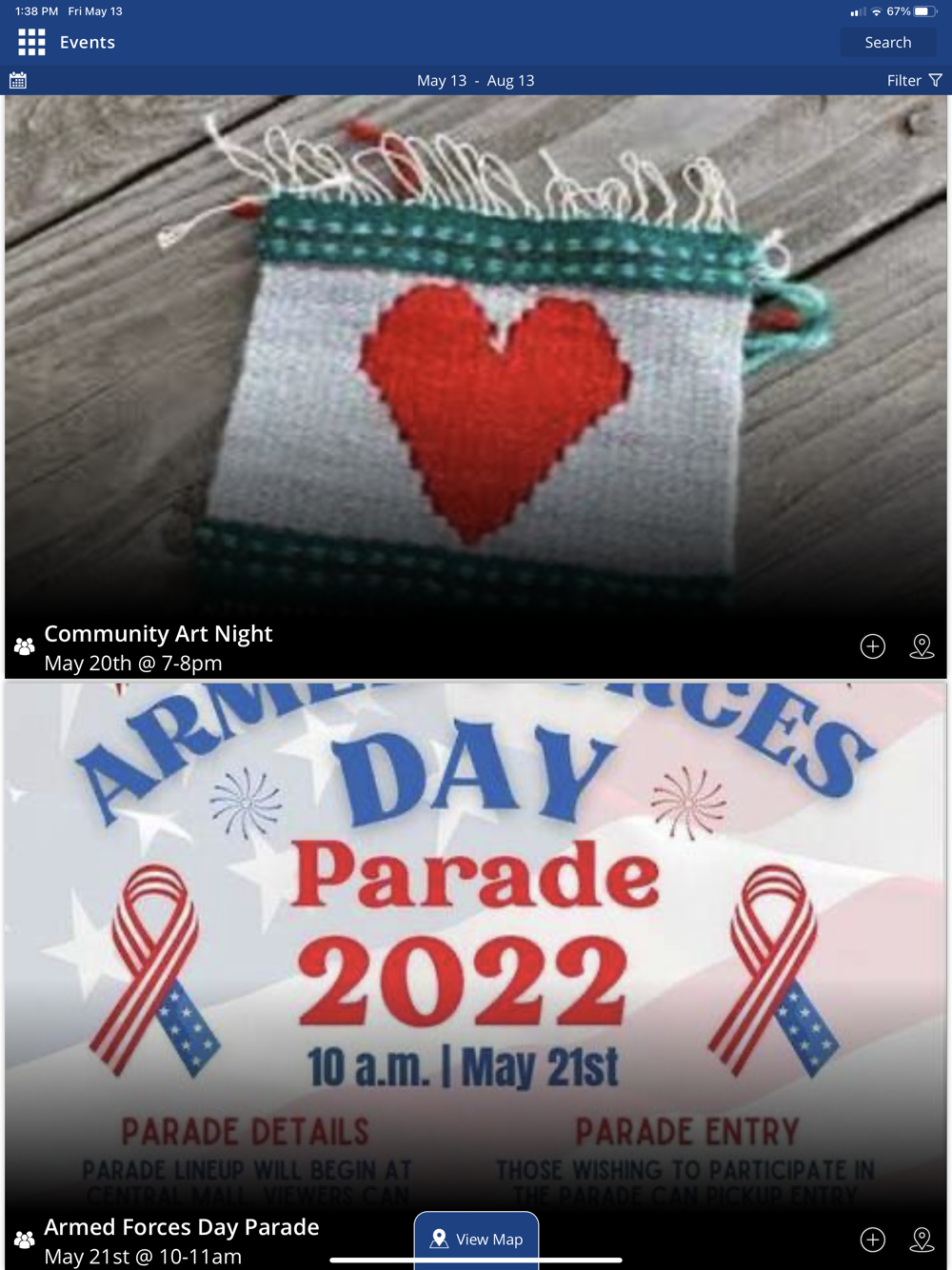 • View upcoming events near you