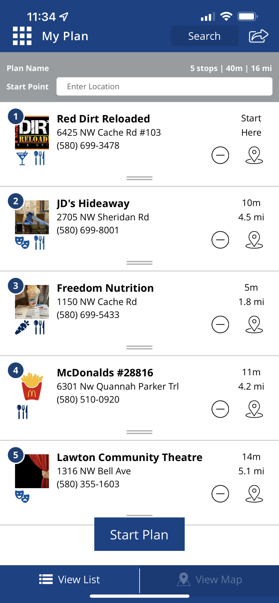 • Add events and places to your custom trip