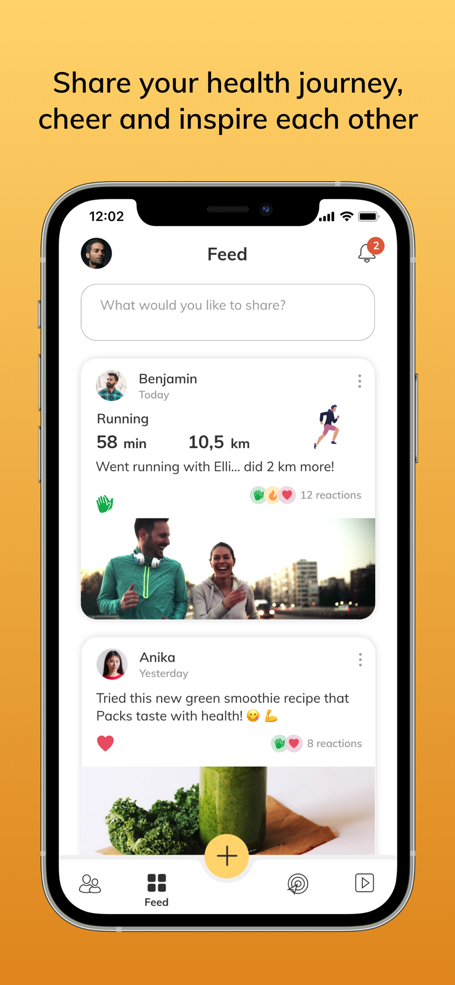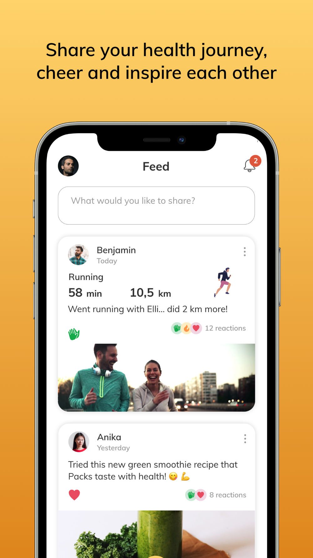 - Share your health goals and activities with your friends