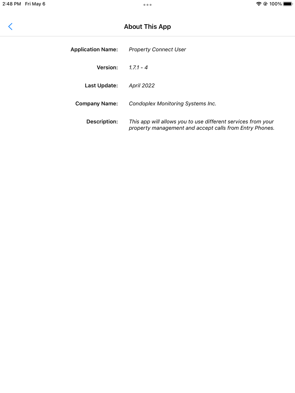 'PropertyConnectUser' permits an authenticated user (resident or staff) to receive audio/video calls from a Guard Workstation (Admin app) or Kiosk/Entry Phone (Kiosk APP).