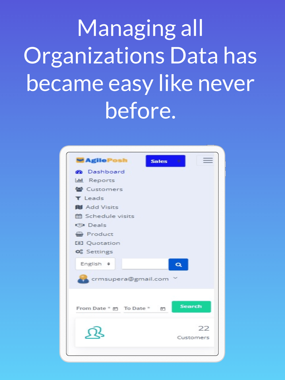 AgilePosh provides automation solutions for all the organization's needs in one place. It provides a complete solutions for all the Sales, Marketing, Service, Inventory and HRMS needs within the organizations. AgilePosh is a business-friendly platform with a simple user interface, customizable modules, and easy to use.