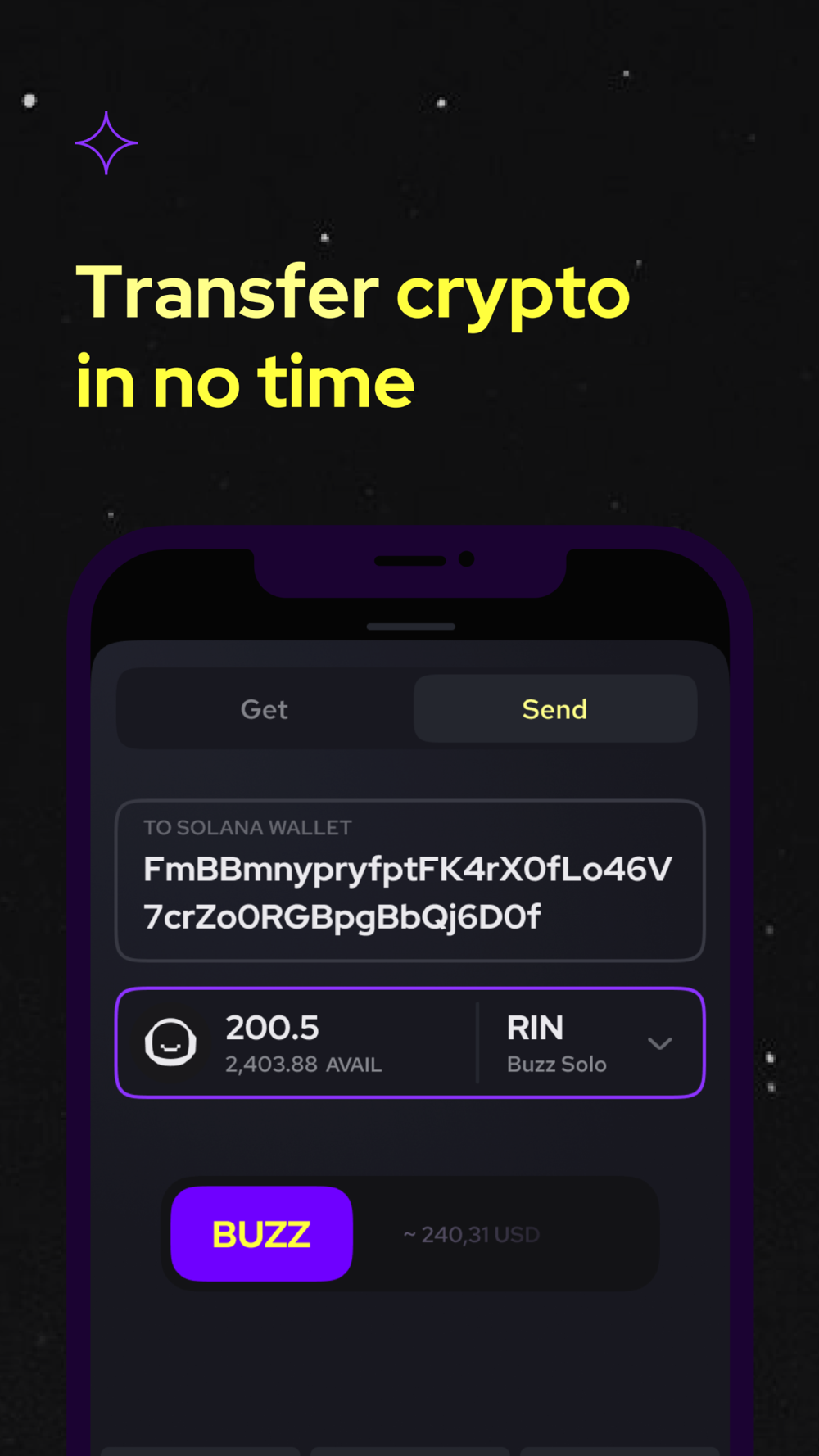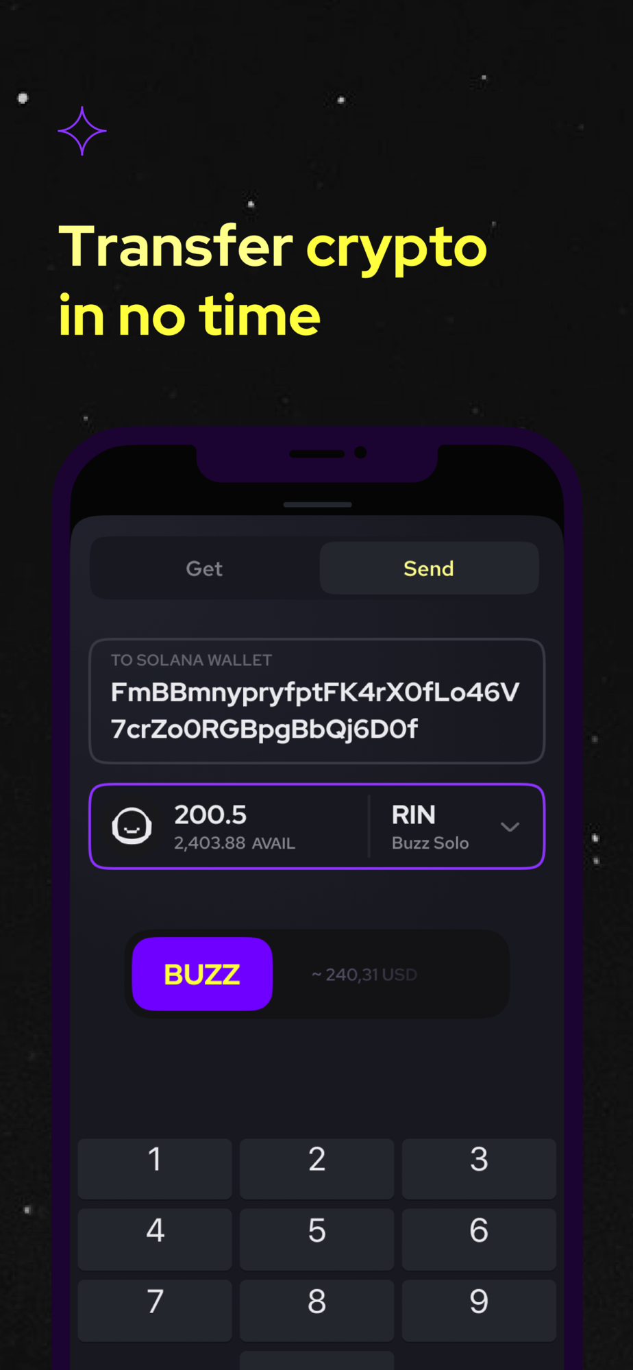 Buzz is a fun and simple way to get into crypto and discover the Solana blockchain. You can easily transfer, and exchange, all in one place.