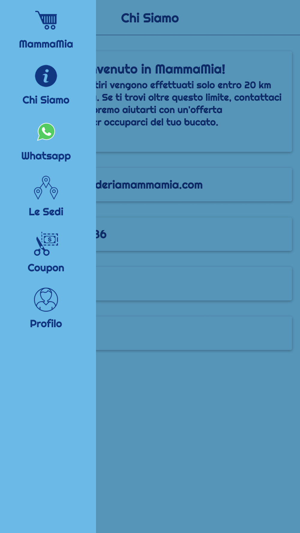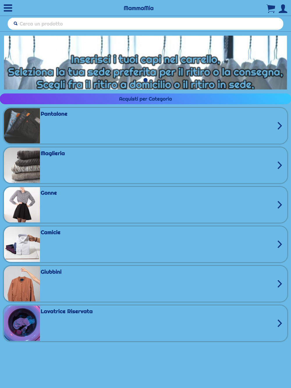 Dall'app Lavanderia Mamma Mia potrai effettuare il ritiro e la riconsegna dei tuoi capi lavati, stirati e piegati; inoltre potrai facilmente acquistare prodotti e accessori per la tua casa.