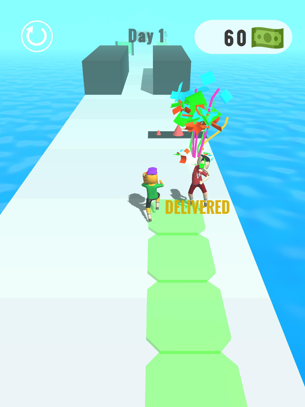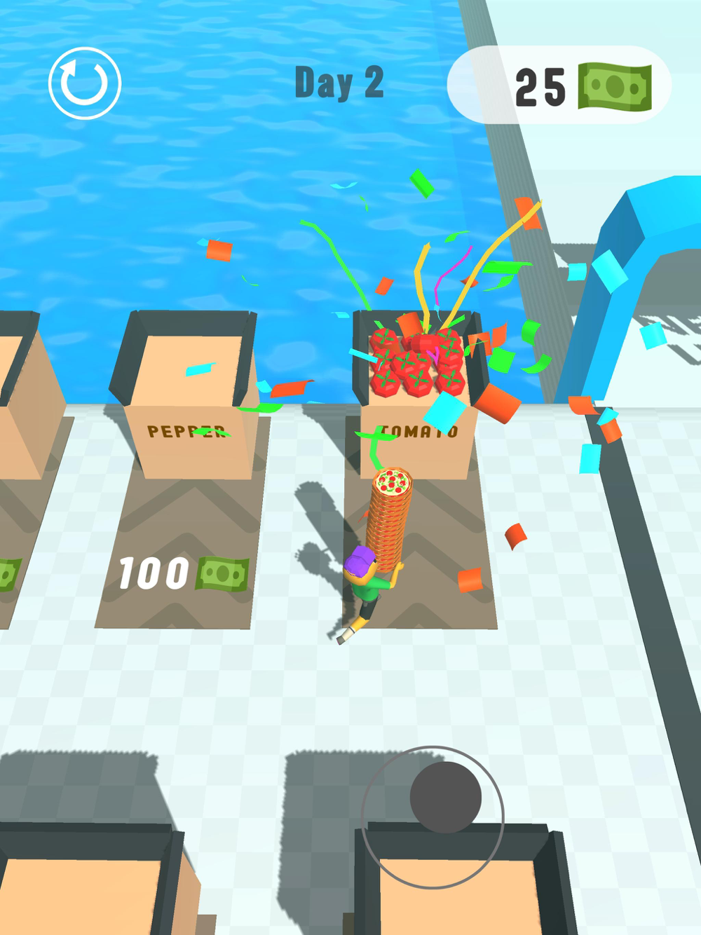 Buy ingredients to increase the pizza price. Deliver it to the hungry buyers. Watch out some people want to steal your pizzas, be faster then them. Be carefully there are some obsticles the a road better to avoid them. Pizza kingdom is waiting for you.
