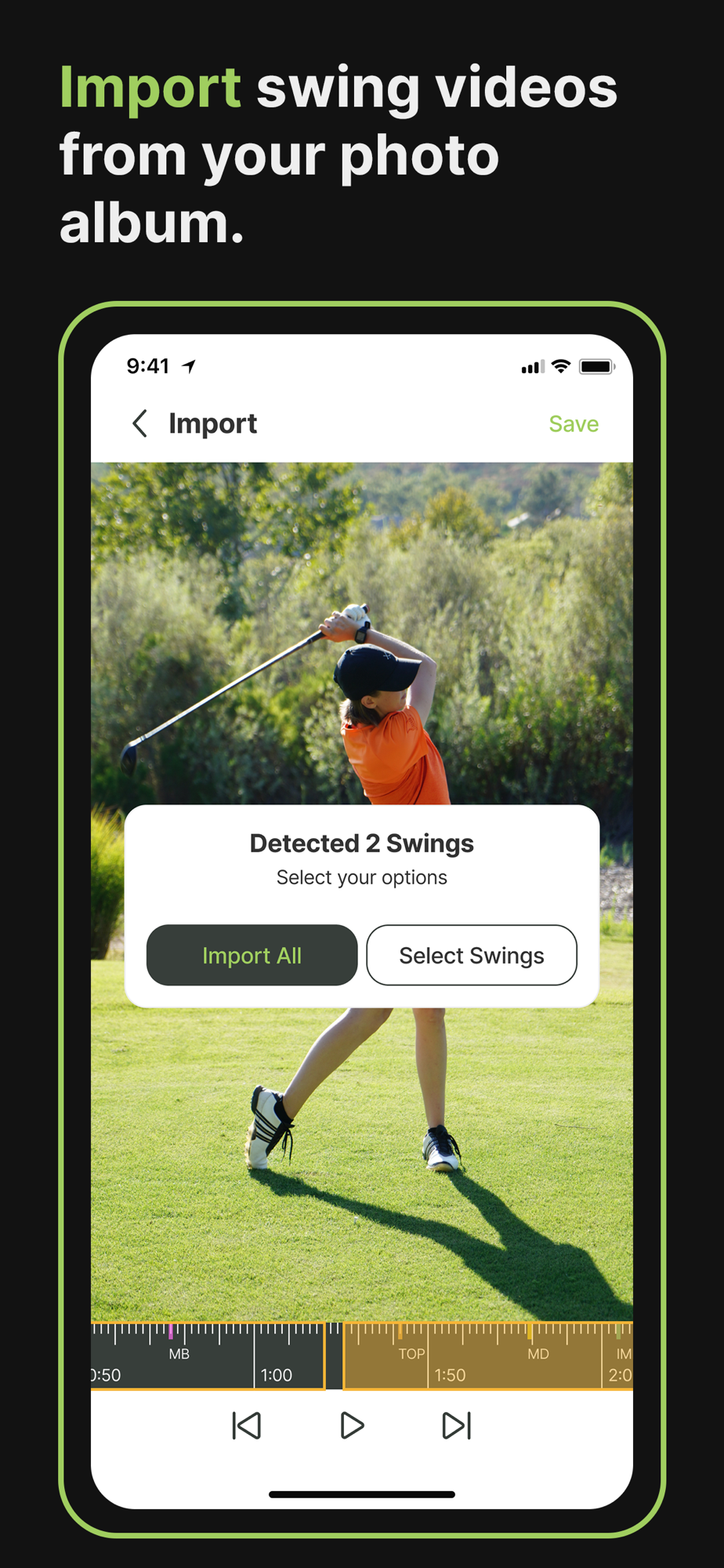 Do you already have swing videos you want to analyze? You can import them into Swing Tune-Up with the video importer and analyze and manage your swings in one place! You can also export and share your videos with annotations to your friends and on social media.
