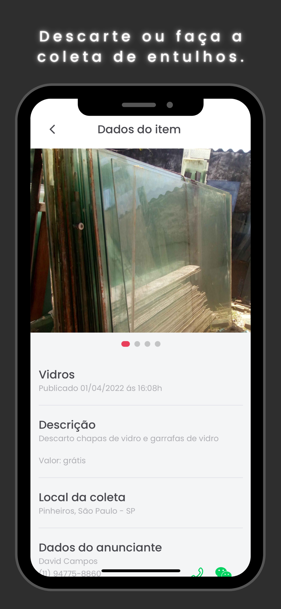 A informação de descarte é passada para todos os coletores cadastrados em tempo real, aquele que estiver mais próximo, ou achar mais atrativo o material, irá se deslocar até o local para fazer a retirada, por isso essa ação costuma ser rápida e barata.