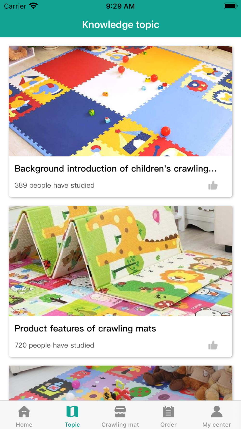 This app mainly provides online ordering service for crawling mats. You can choose your favorite product to place an order, and place an order by submitting your contact information and delivery address. Our products will be delivered through your delivery address. At the same time, we also provide the background introduction, product function, material selection analysis, precautions and maintenance of the crawling mat.