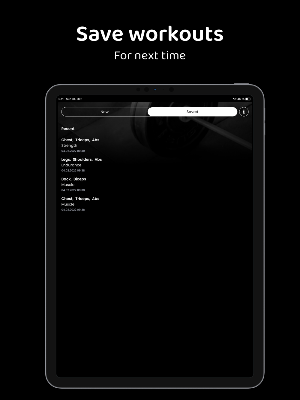 - Save and update workouts