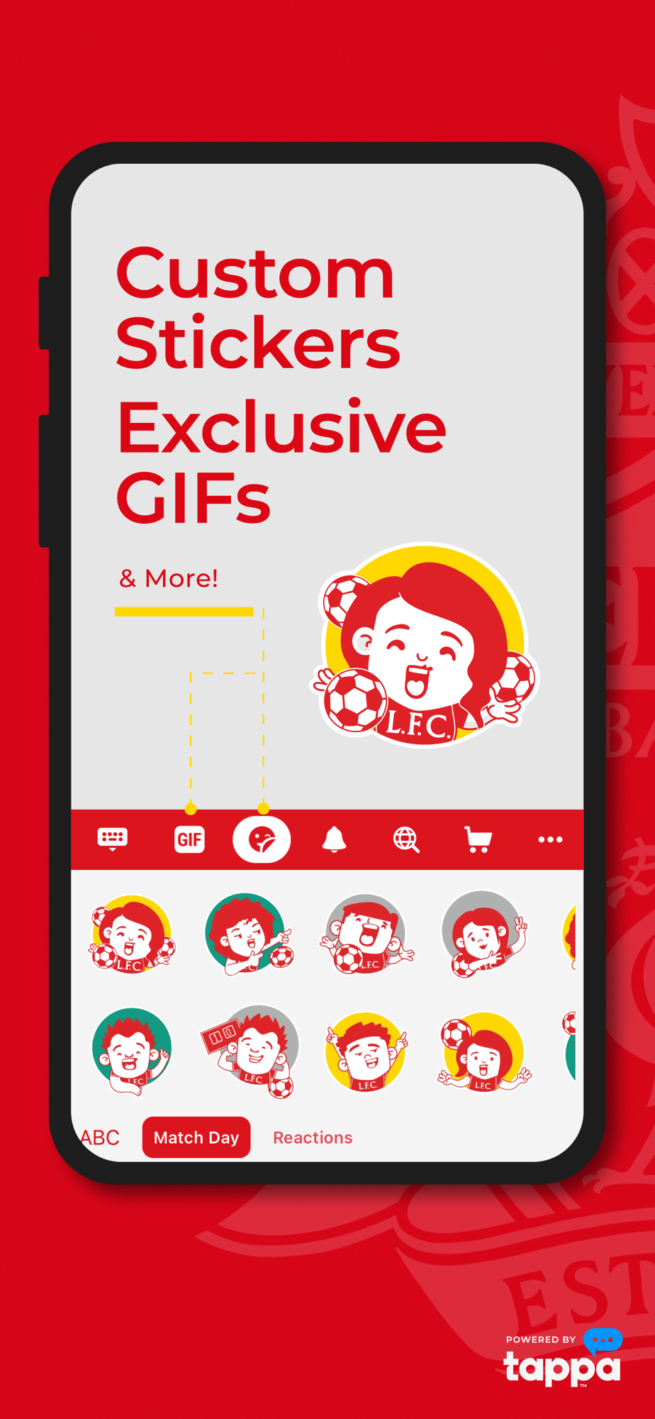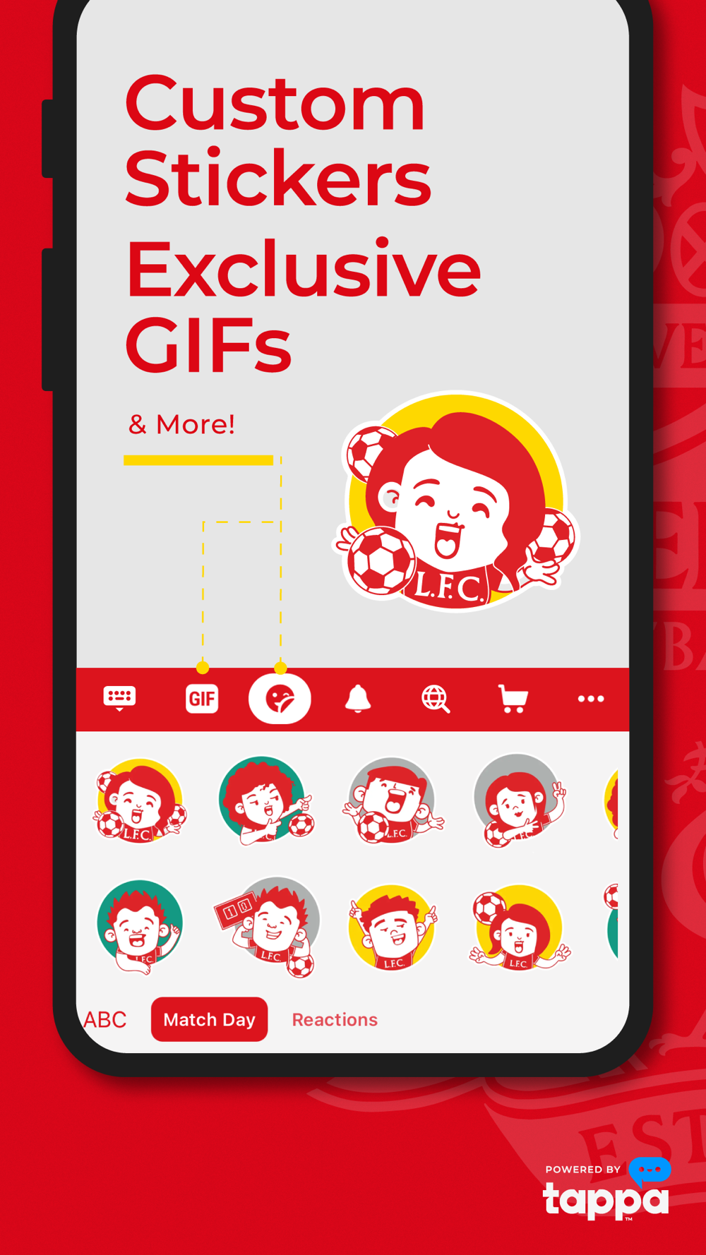 Use a Full Library of Custom Stickers & Exclusive Content! When words alone won’t do, say it with unique Liverpool FC stickers and amazing GIFs!