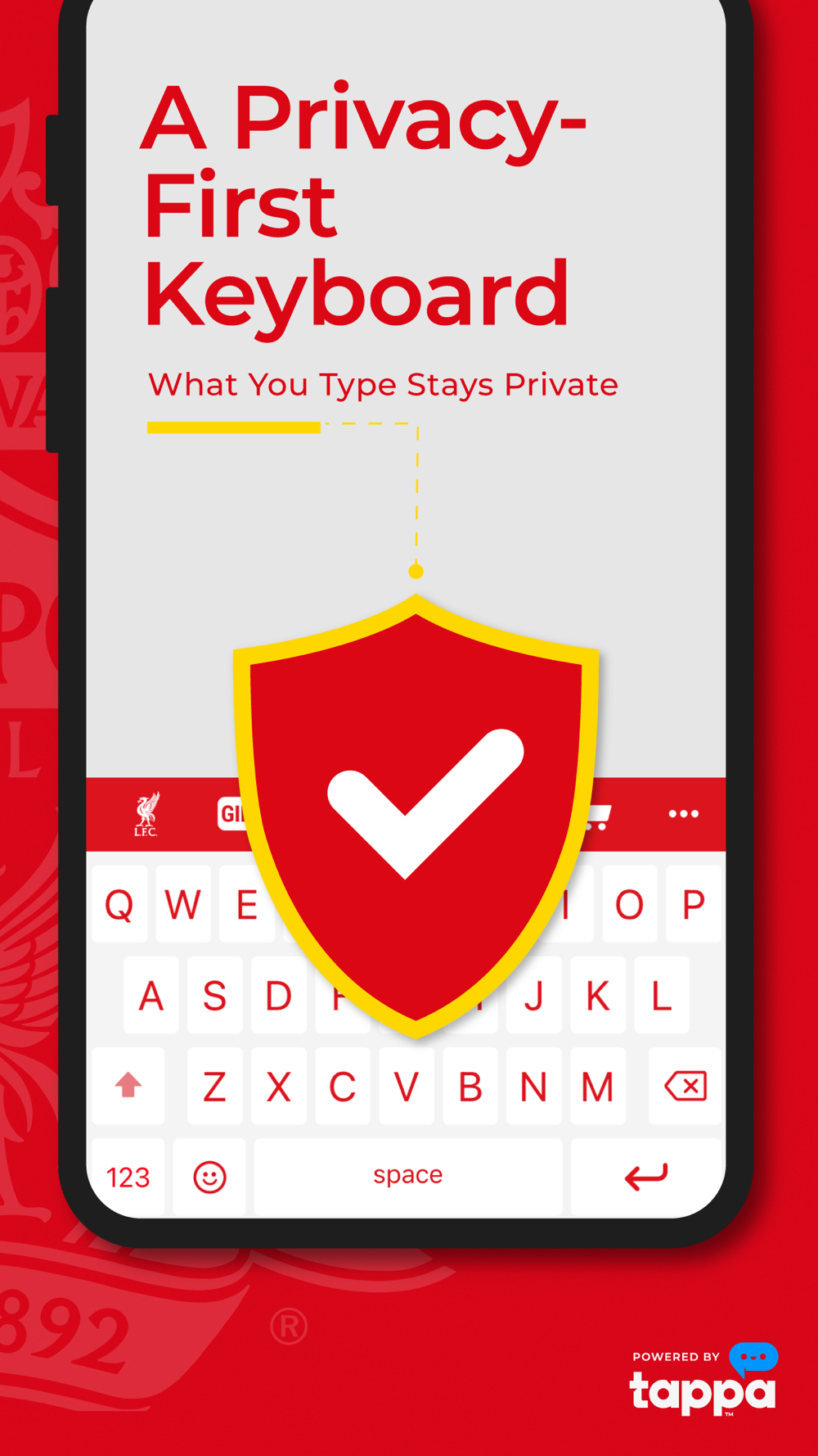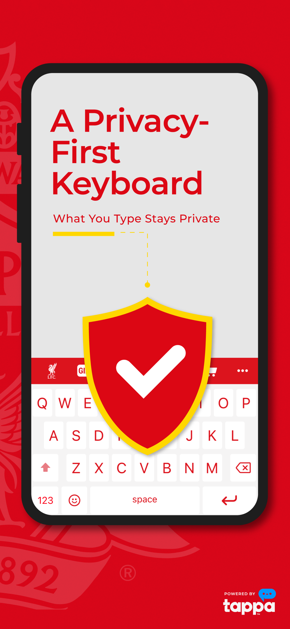 The Liverpool FC customized keyboard for true fans is powered by Tappa, a privacy-first mobile device technology from Tappa-Inc.