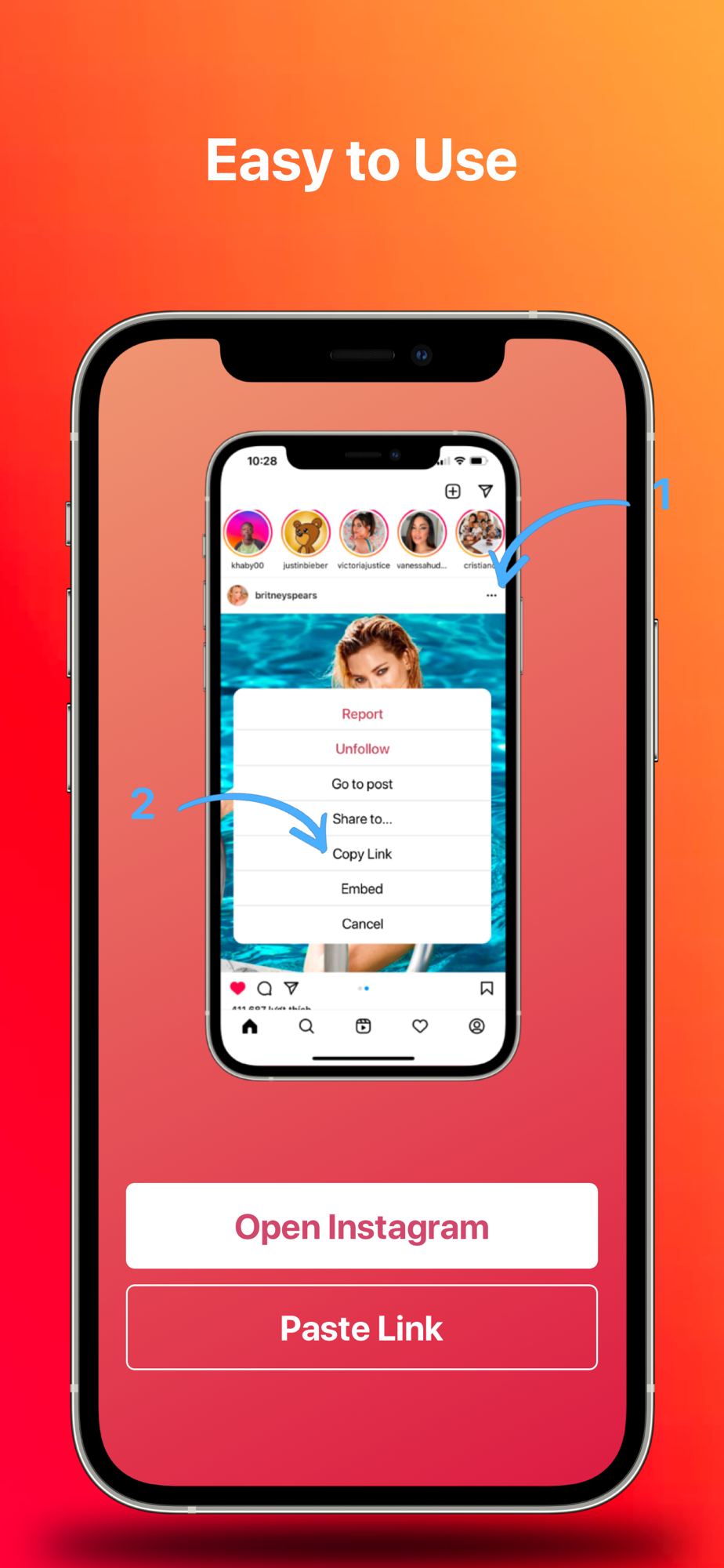 • Copy instagram link
