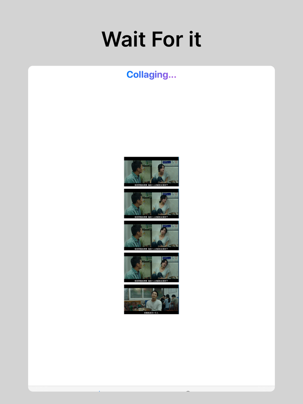 Frame helps you to create a collage movie screenshot with subtitle. Frame has simple interface, you just need to record a movie clip with subtitle and import it to this app, Frame will extract image from the movie and make a collage for you.