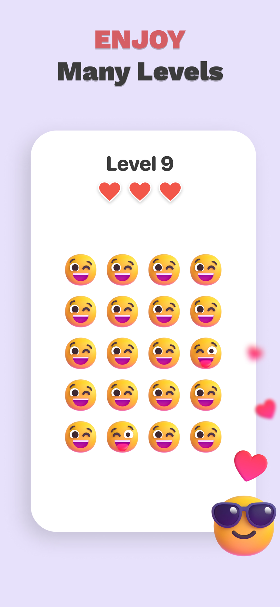 A new game in which you have to match emojis in a fun and tricky way. Boost your creativity by playing 10 minutes every day. Each level is followed by one or two fun quick mini-games. Harder than you think!