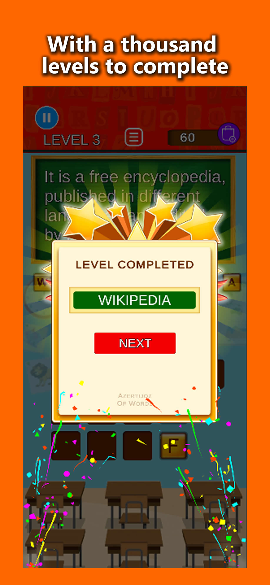 "Azertijoz Of Words" is a riddle and trivia game to enjoy completing the words as if it were a word puzzle. It's unlimited time and you don't need to have an internet connection to play it.