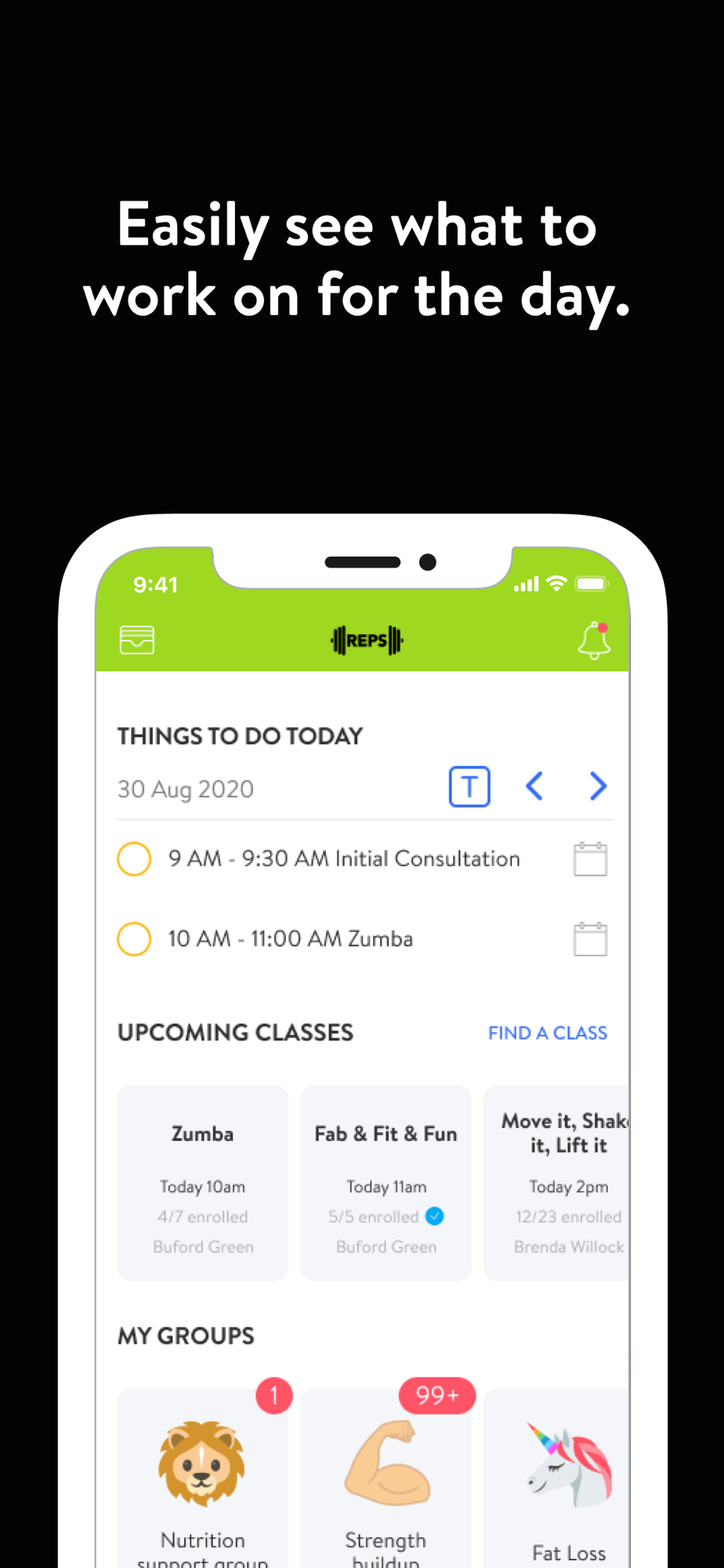 - Get push notification reminders for scheduled workouts and activities